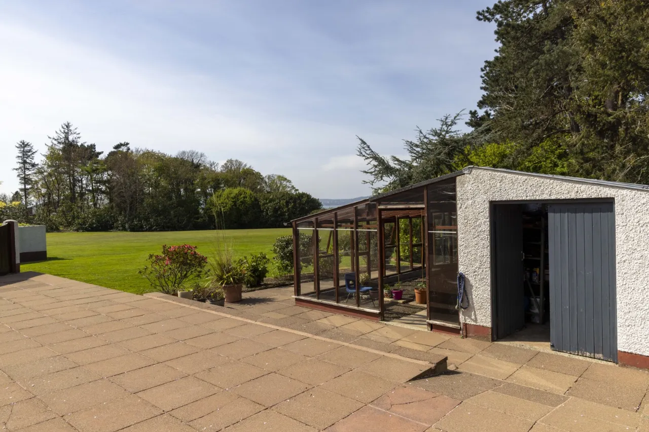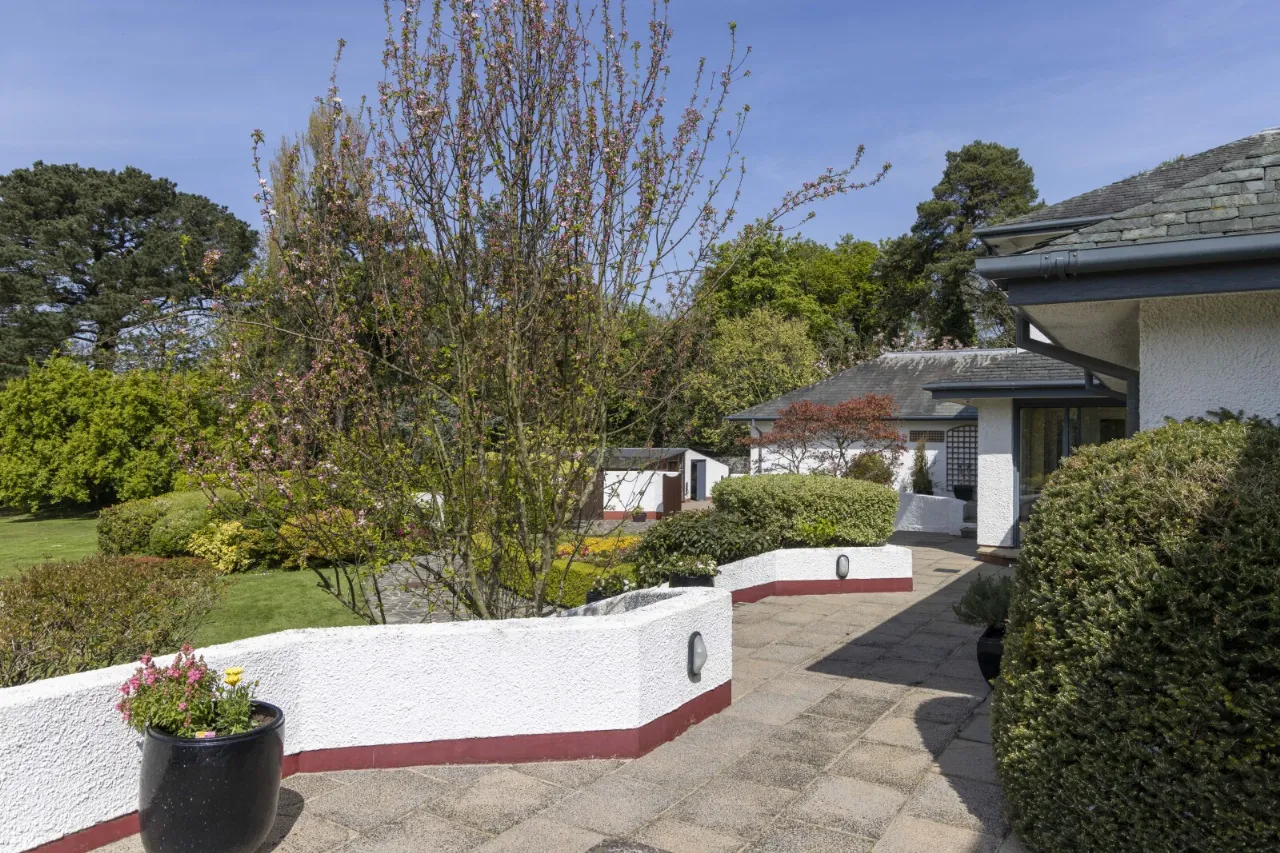 An attractive pillared entrance from Circular Road East leads to a sweeping driveway. To the front and side of the property there is generous parking. On the Westerly and North Westerly elevations there are private patio areas capturing the sun from late morning to sunset.