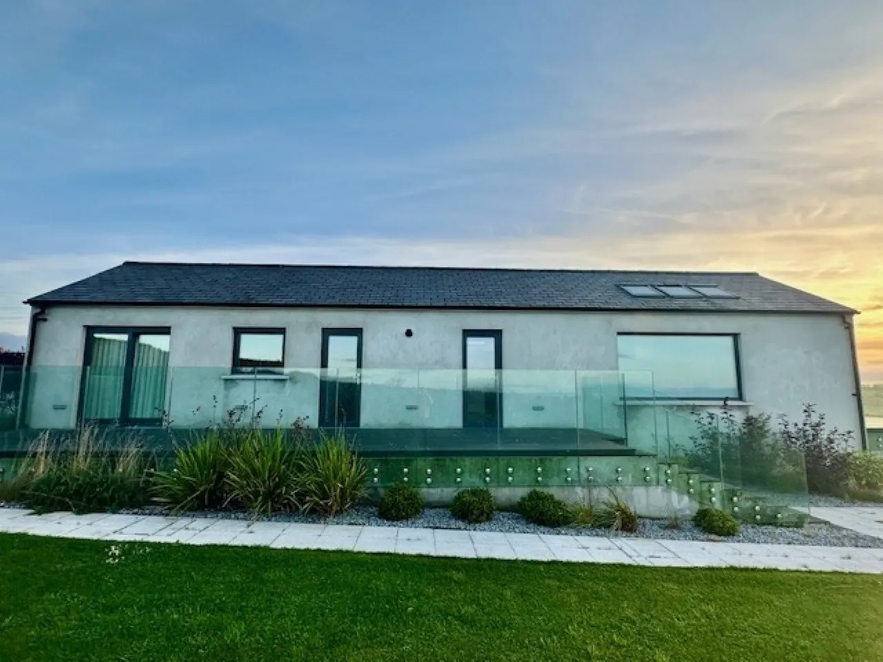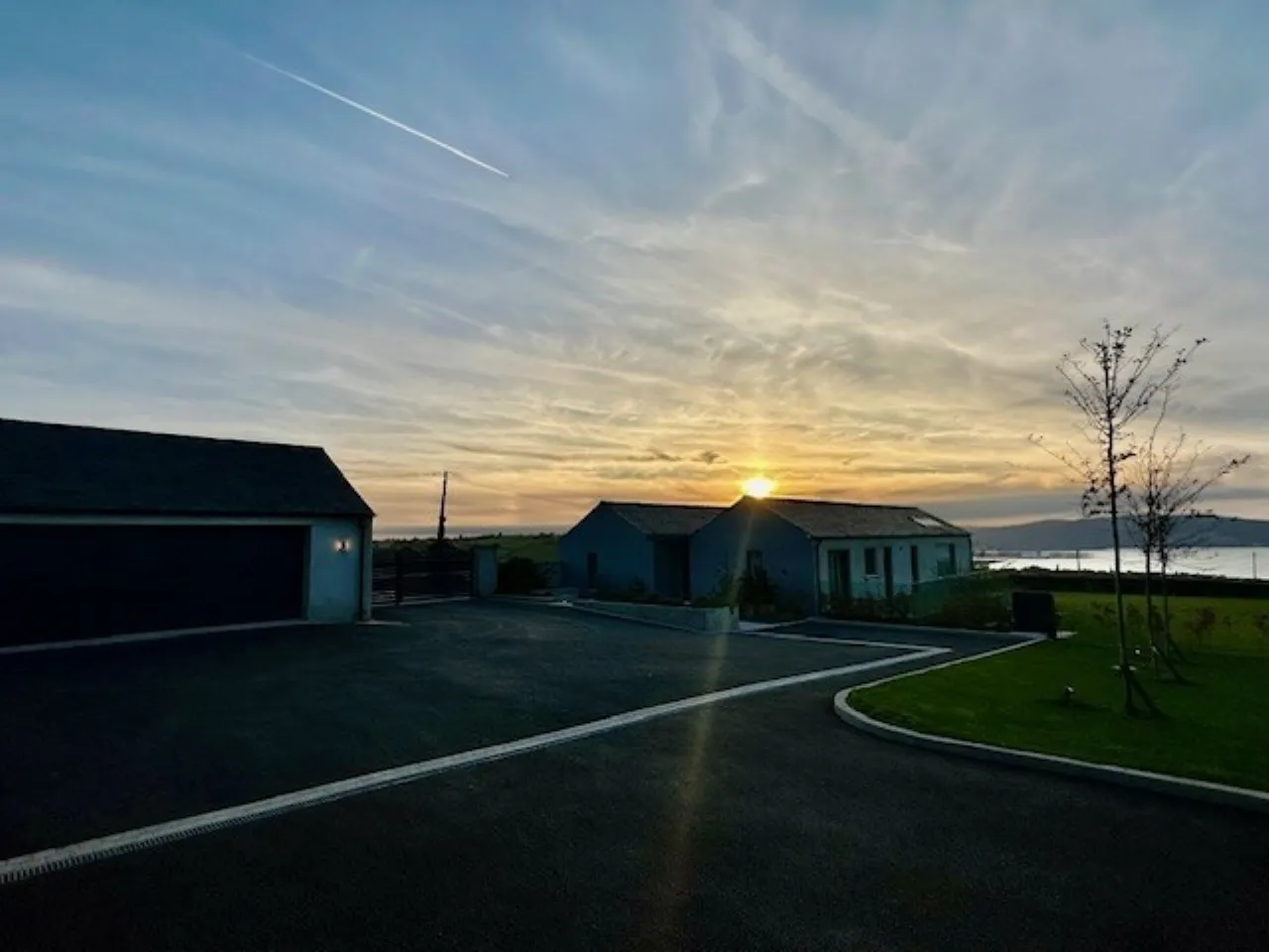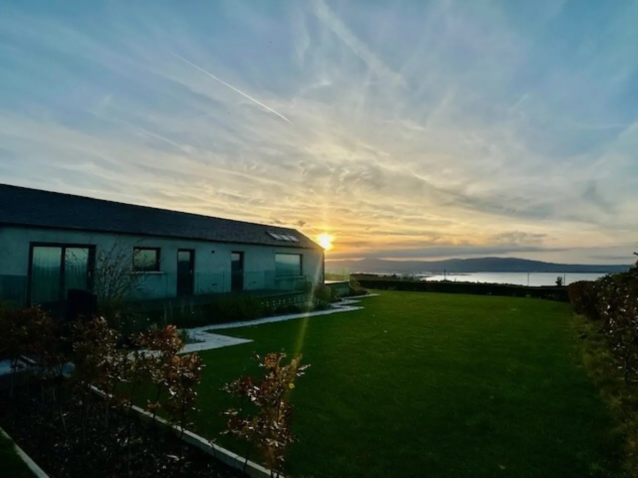 The cottage features a stunning open-plan kitchen, living, and dining area with sliding door to a large decked balcony showcasing panoramic views over Belfast Lough. The contemporary kitchen includes quartz worktops and high-end appliances, while the three well-appointed double bedrooms provide comfort and elegance—the principal suite boasting breathtaking views, a luxury ensuite bathroom, and a dressing room.