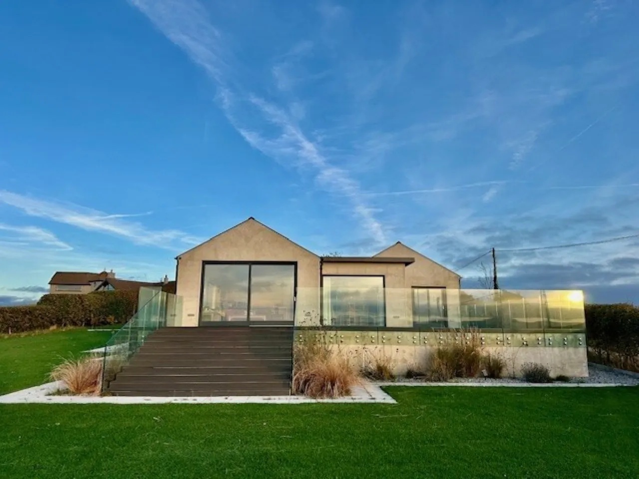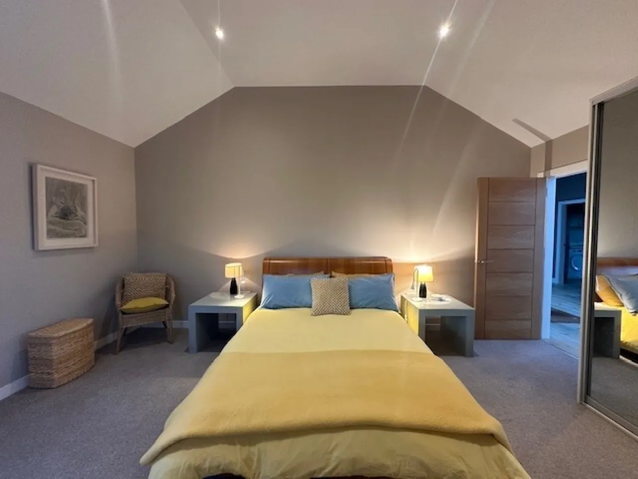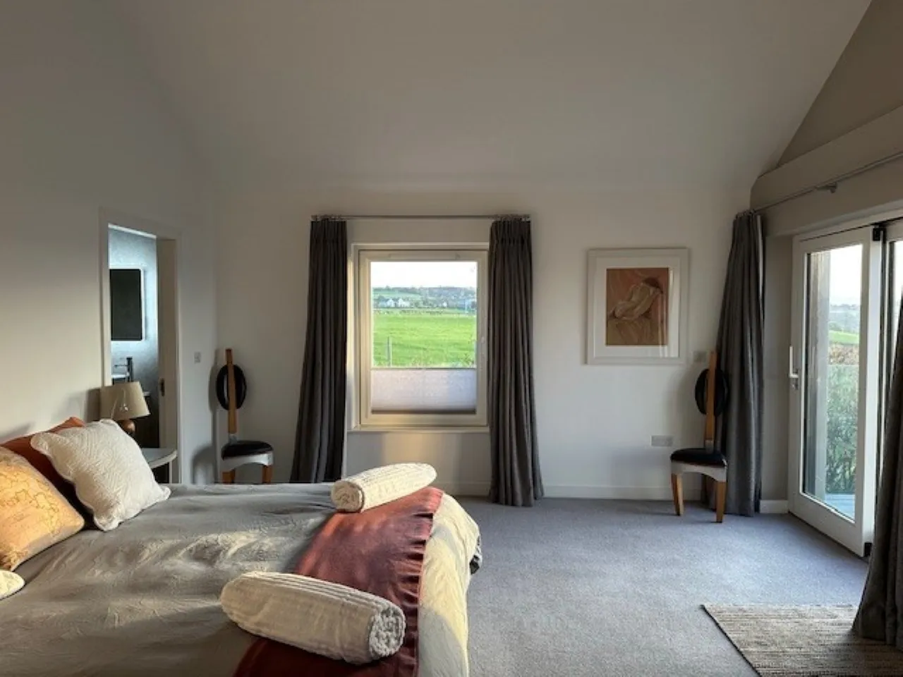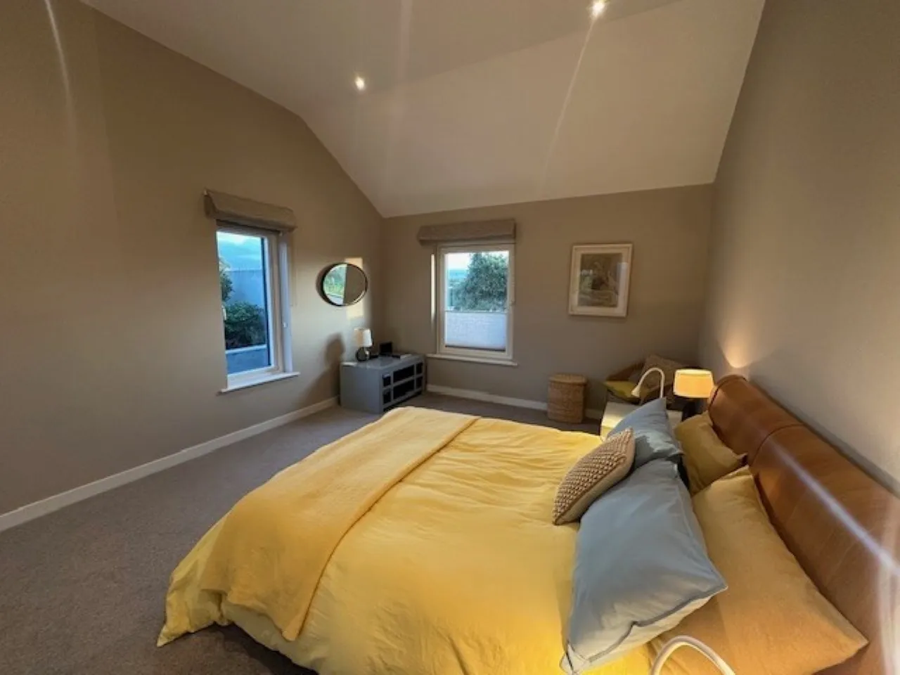 The cottage features a stunning open-plan kitchen, living, and dining area with sliding door to a large decked balcony showcasing panoramic views over Belfast Lough. The contemporary kitchen includes quartz worktops and high-end appliances, while the three well-appointed double bedrooms provide comfort and elegance—the principal suite boasting breathtaking views, a luxury ensuite bathroom, and a dressing room.