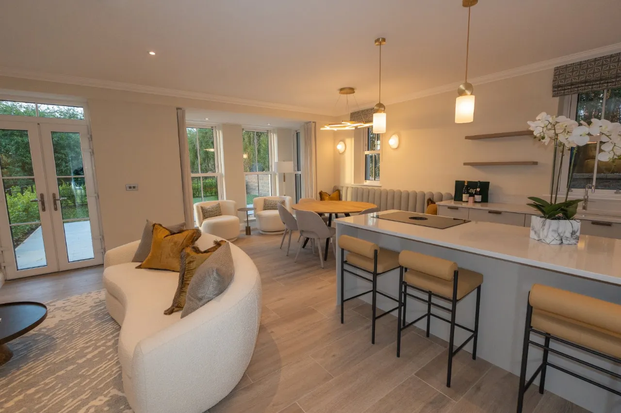 Open plan kitchen, living and dining space
