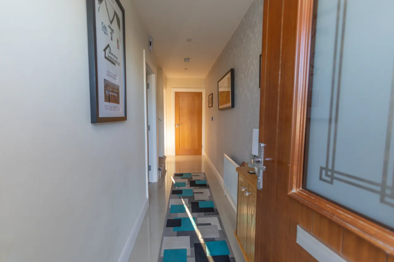 Entrance hall featuring tiled flooring, an internet point, and a single radiator.