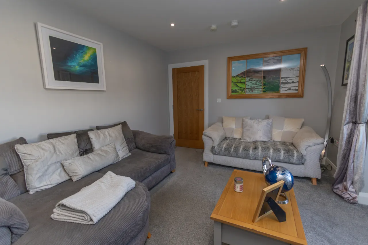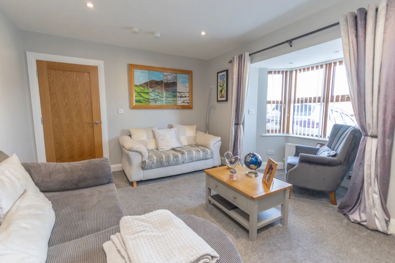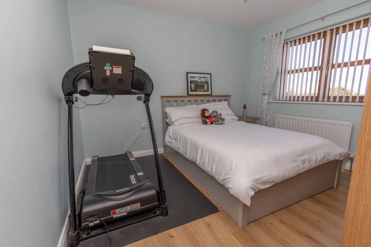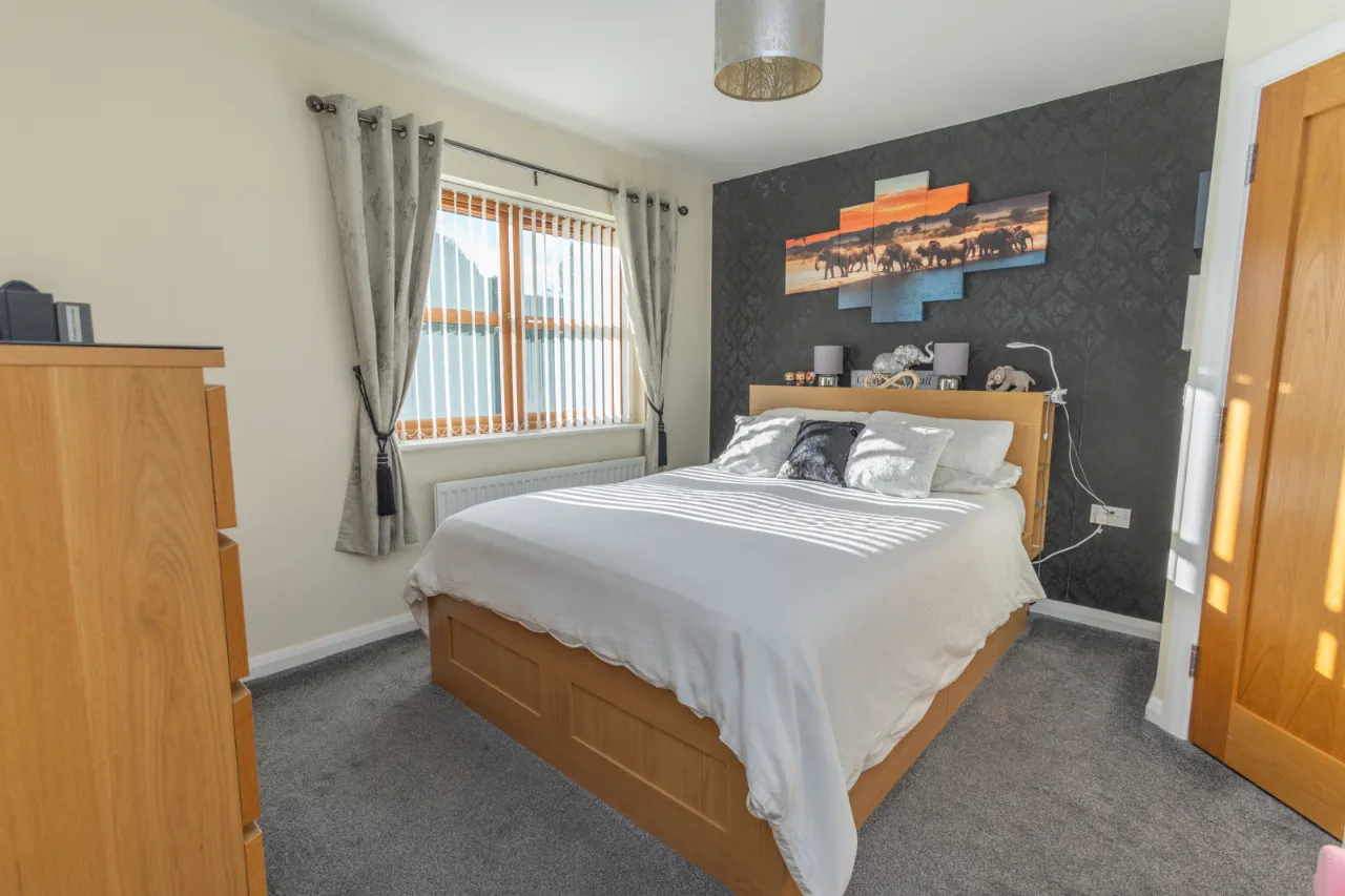 Front aspect with bay window, carpeted floor, open fire with cast-iron insert, polished granite hearth and marble surround. TV point and a double radiator.