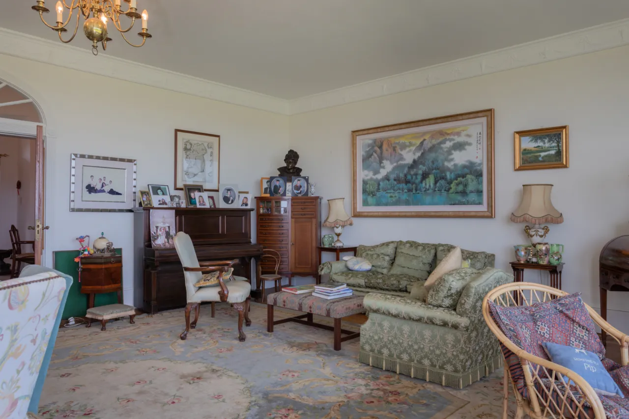 Large bay window with views over countryside, Strangford Lough, Whiterock, Sketrick Island, Scrabo Tower, Ards Peninsula, Craigantlet and the West Coast of Scotland on a clear day, polished oak floor, corniced ceiling.