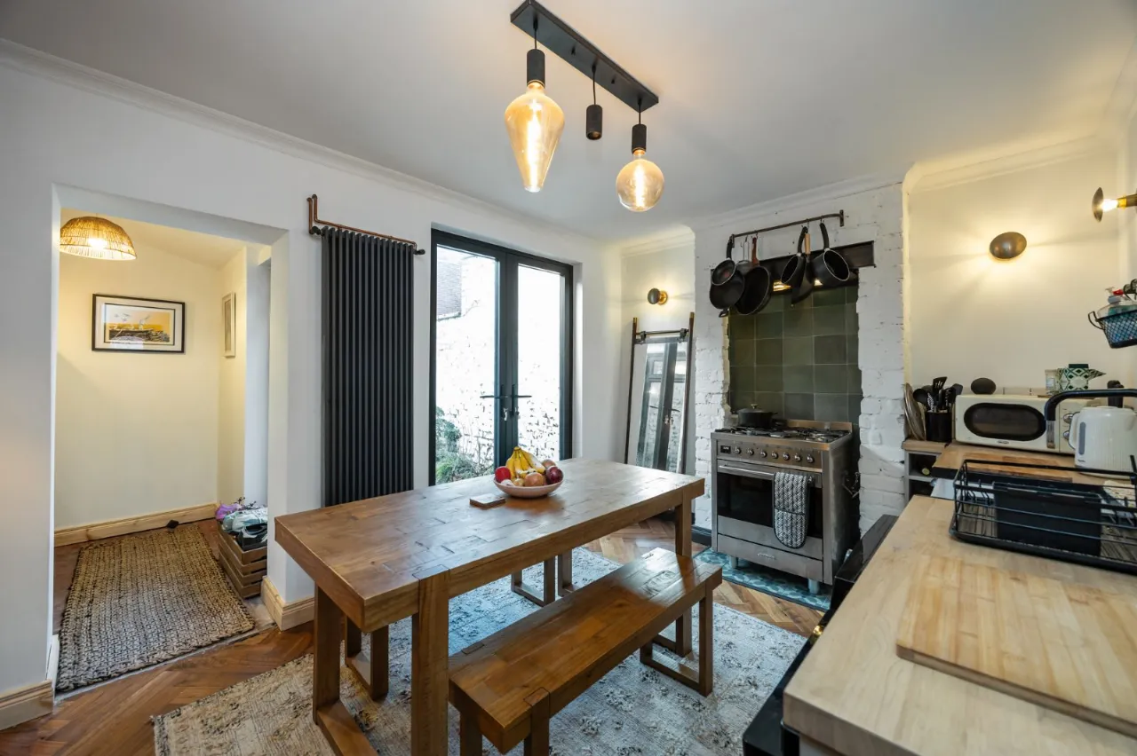 Modern Fitted Kitchen & Dining Area & Pantry Area With Double Upvc Doors To Garden