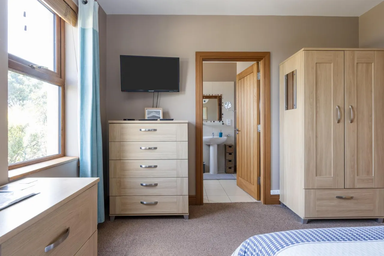 Master bedroom with carpeted flooring and stunning views overlooking the Mourne Mountains and the Irish Sea.