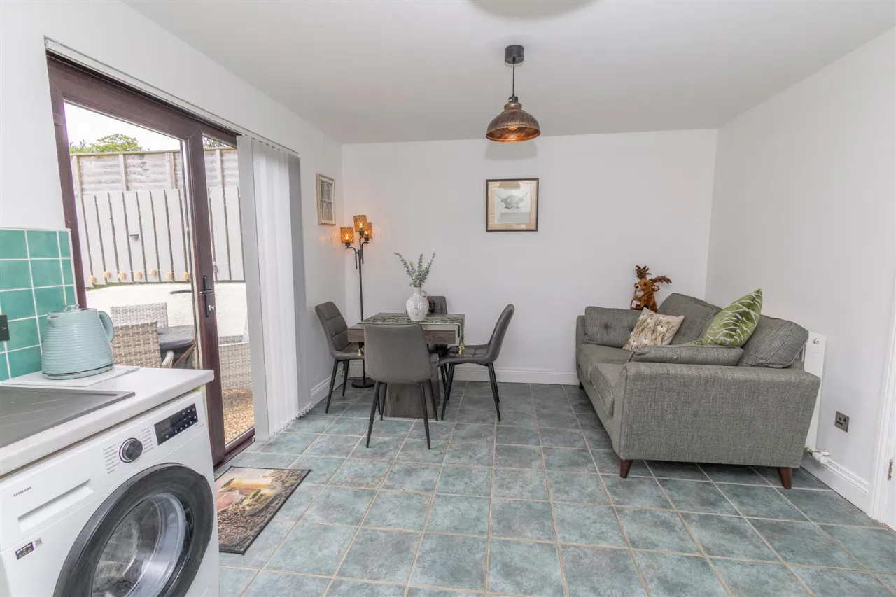 This bright and spacious open-plan kitchen and dining area has been tastefully updated and is ideal for modern living. It features brand new laminate worktops paired with a freshly painted range of high and low level units, offering both style and functionality.