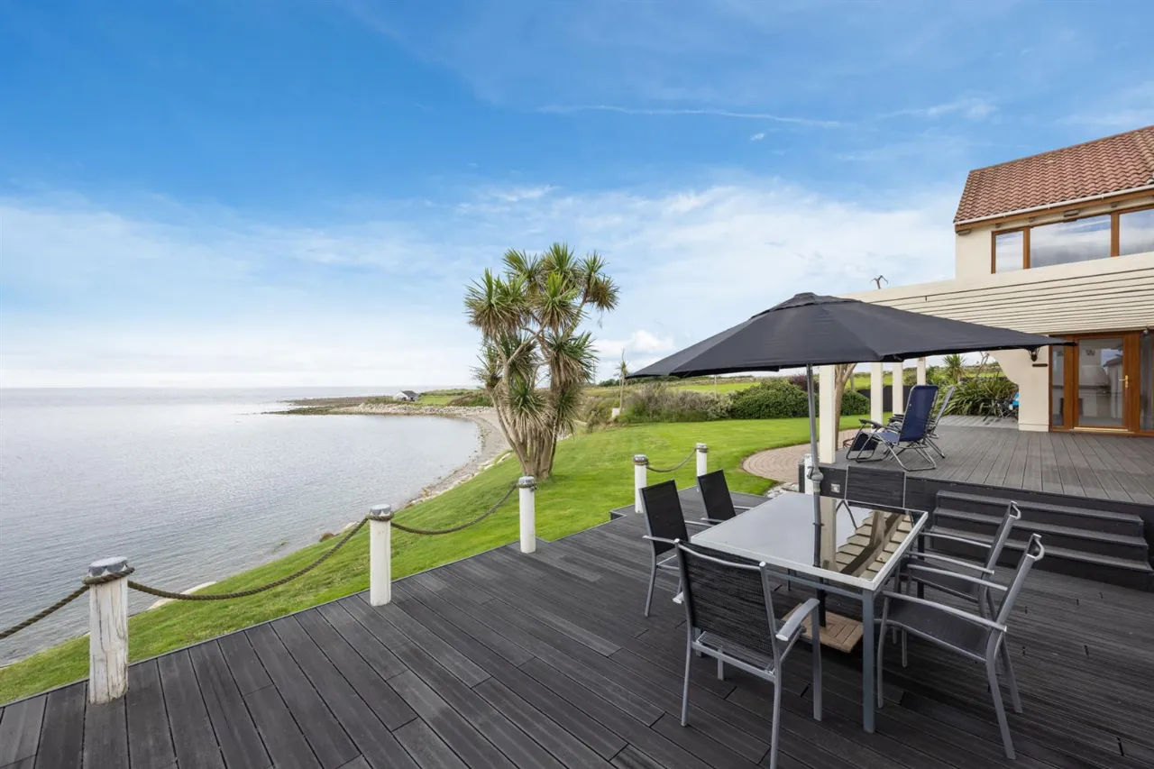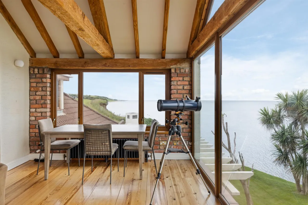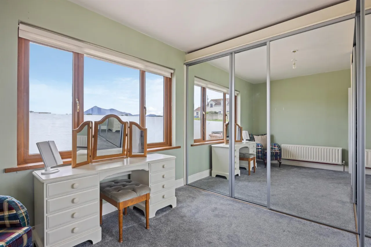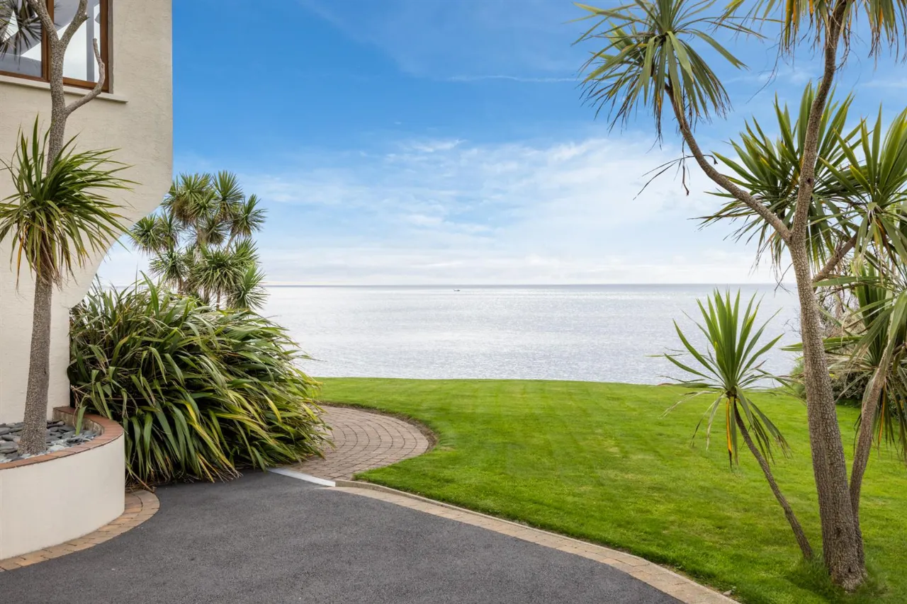 The property is accessed via electric gates, opening onto a spacious driveway with generous parking. The landscaped gardens are laid in lawn and include a raised decking area, perfect for outdoor entertaining, all while enjoying direct and uninterrupted views of the Irish Sea.