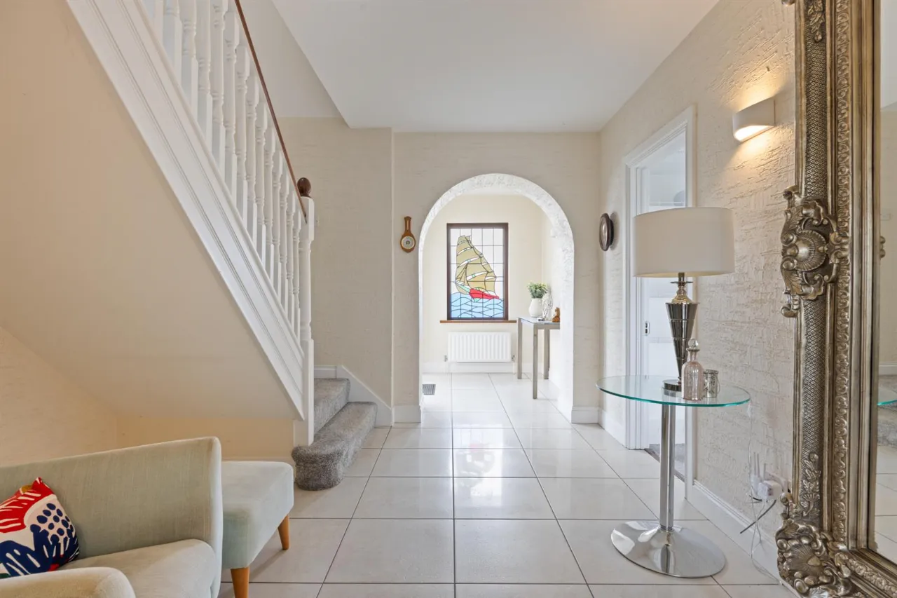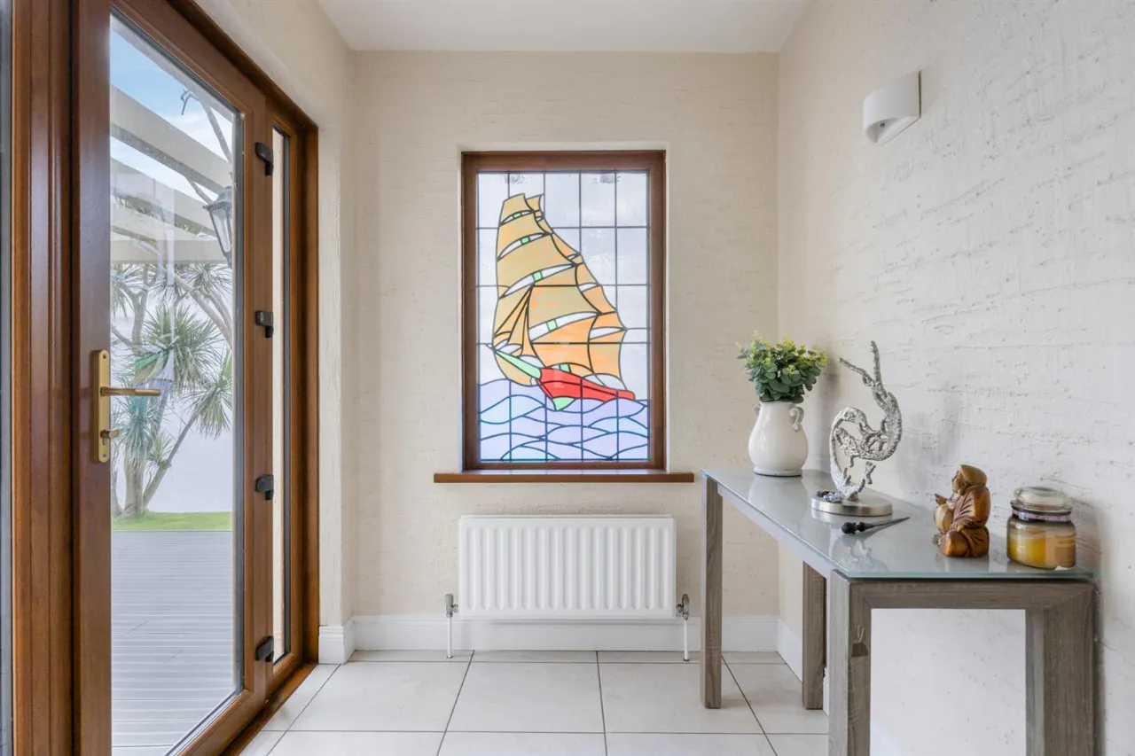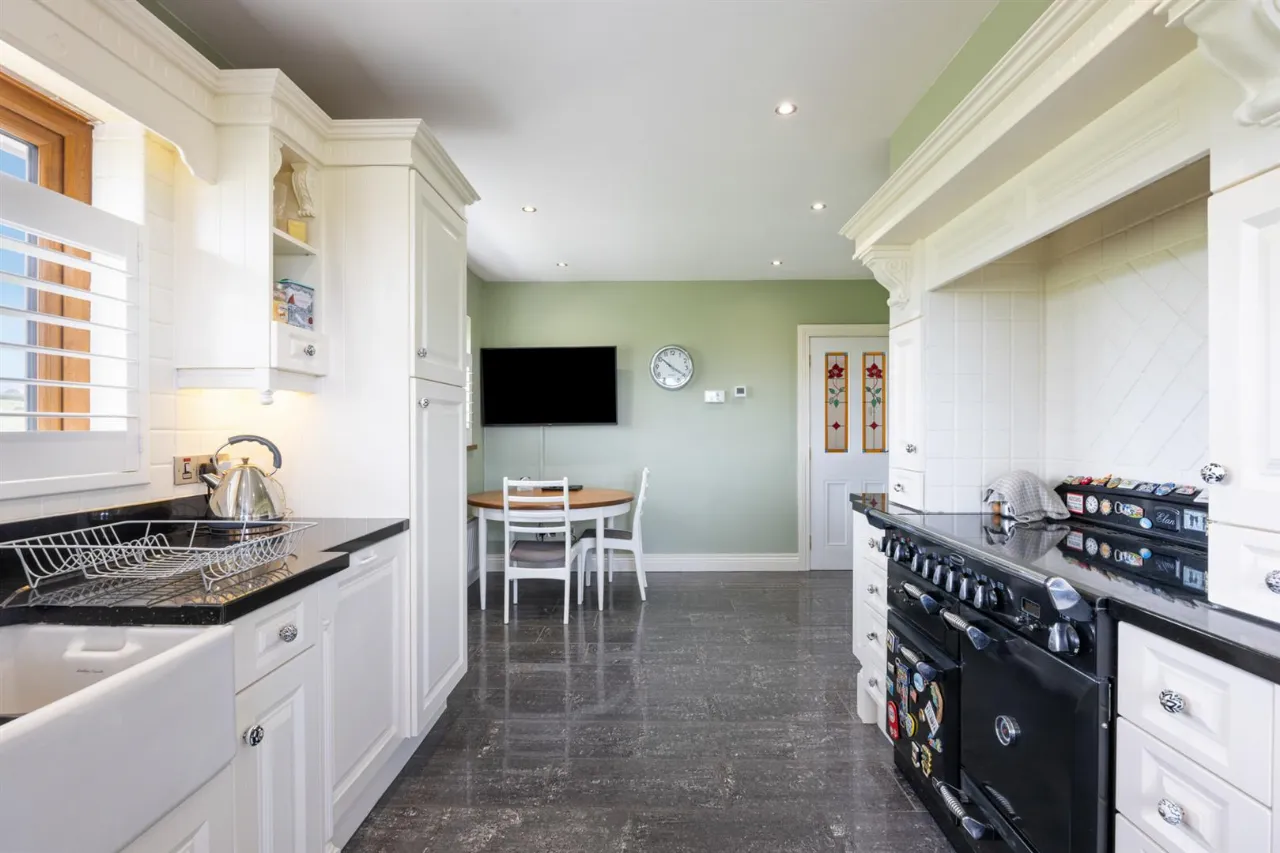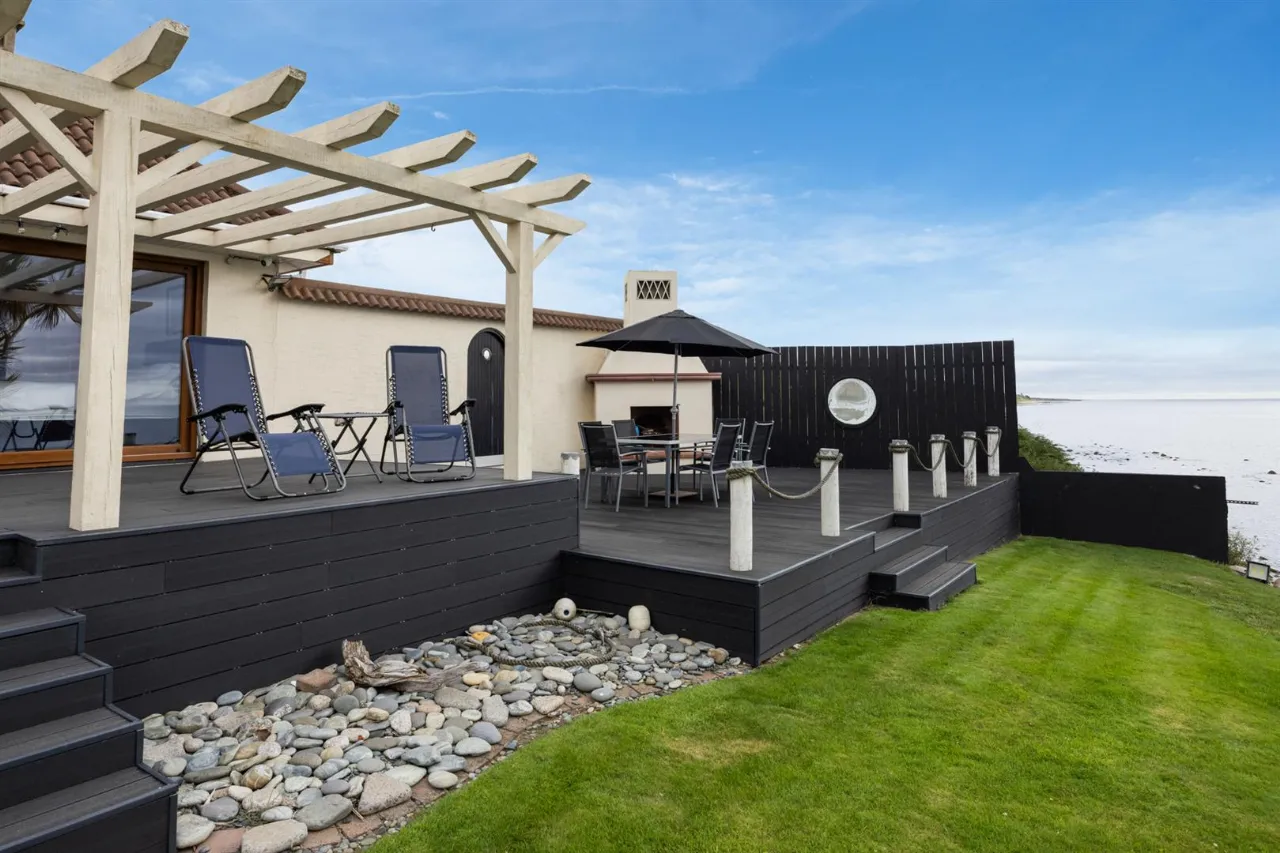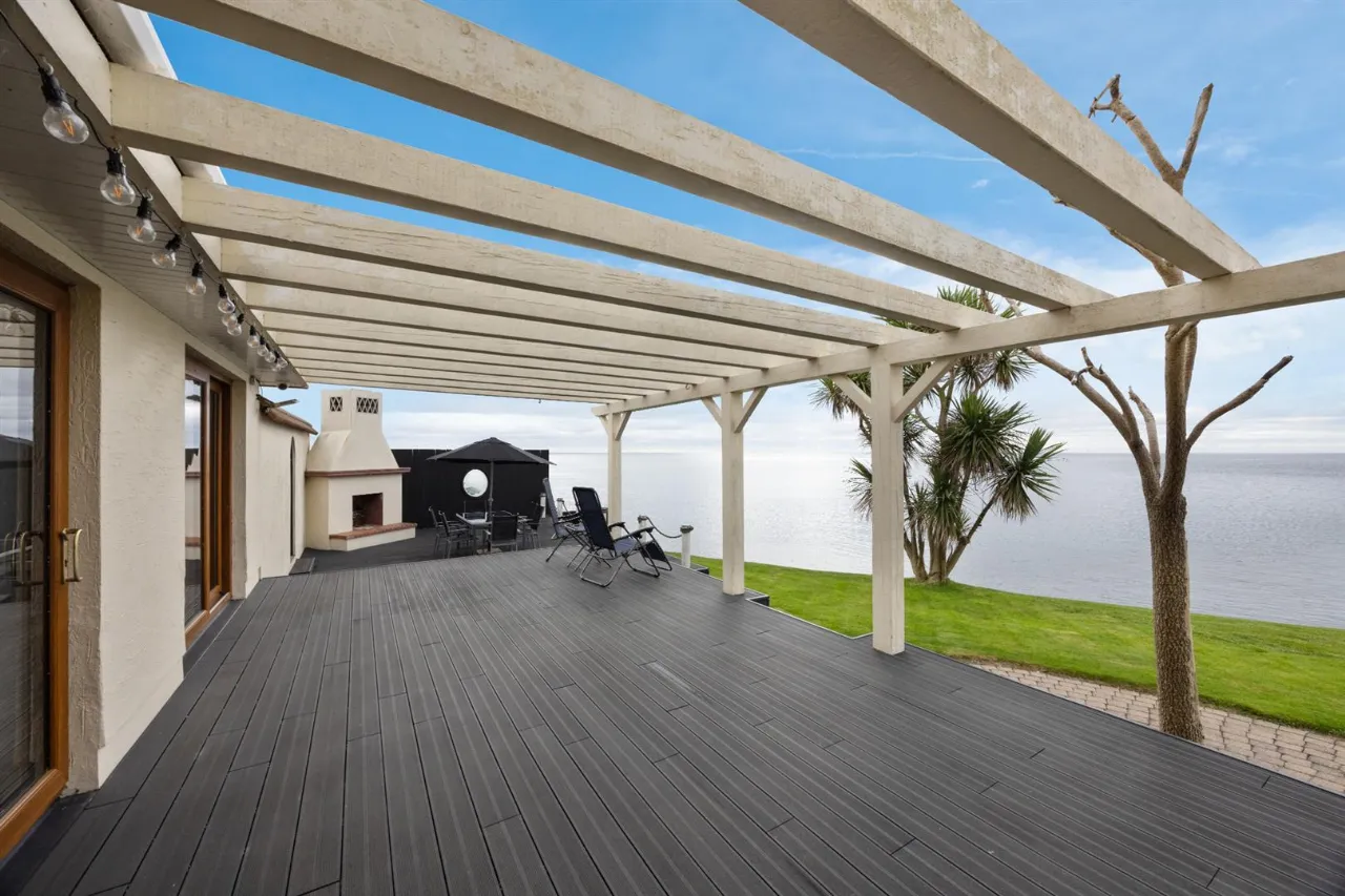 The property is accessed via electric gates, opening onto a spacious driveway with generous parking. The landscaped gardens are laid in lawn and include a raised decking area, perfect for outdoor entertaining, all while enjoying direct and uninterrupted views of the Irish Sea.