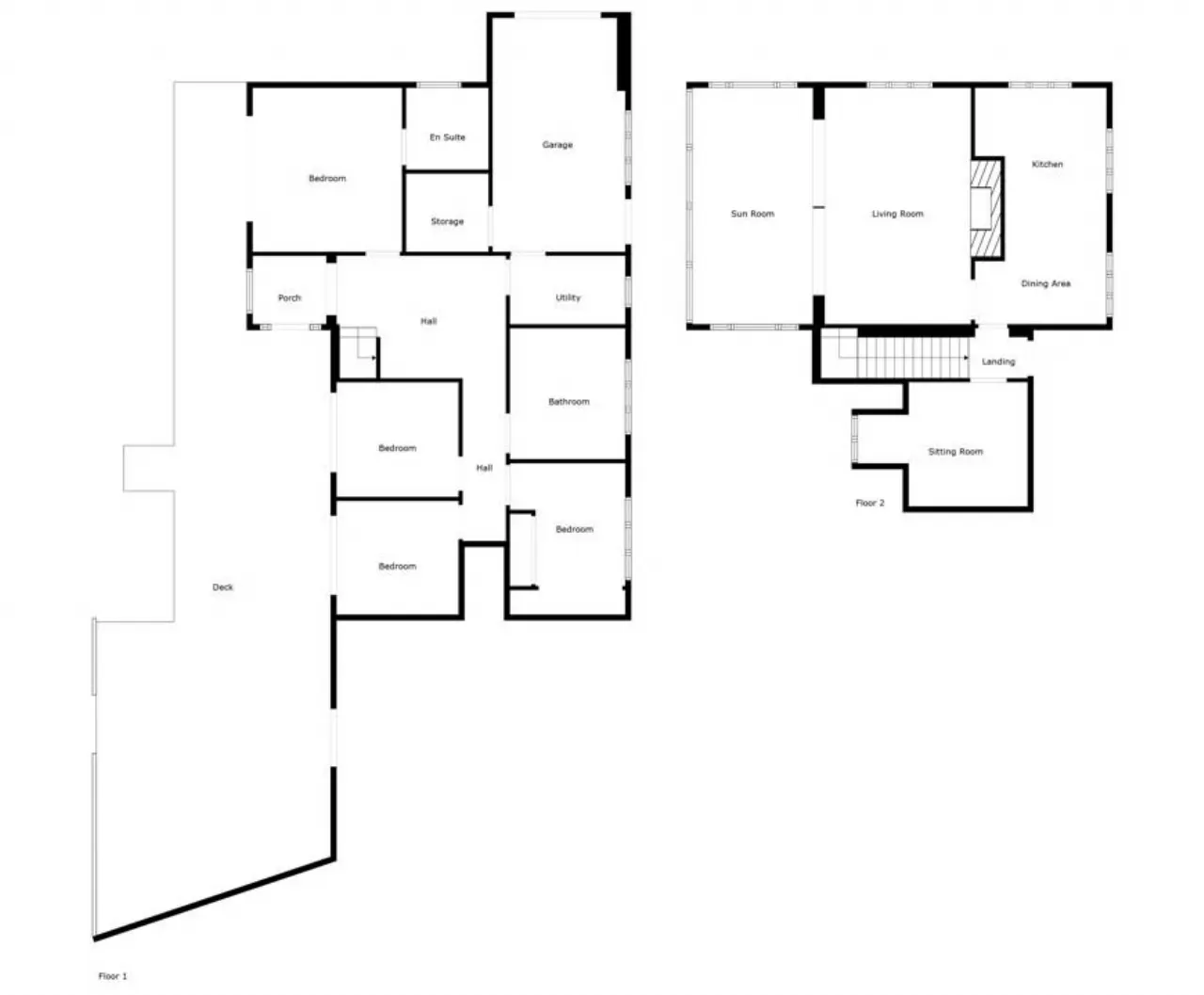 Bedroom two features carpet flooring and sliding doors opening onto the raised decking area.