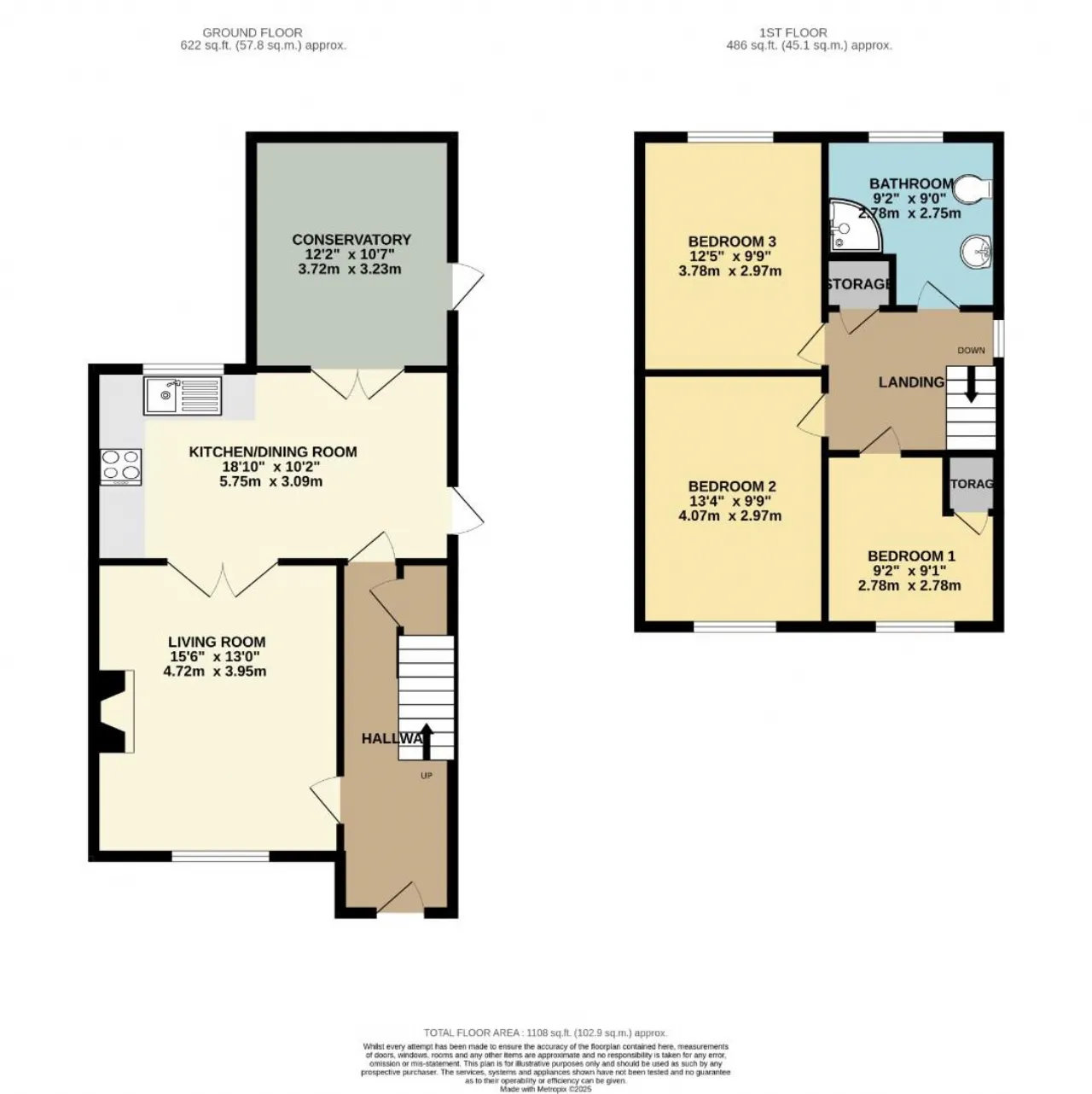 BEDROOM 3: 9'8" x 12'4" (2.95m x 3.76m)