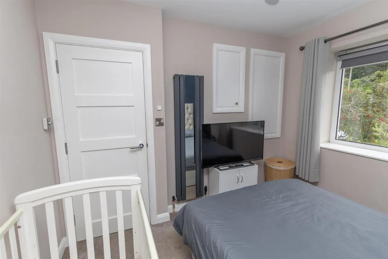 Located to the front of the property. Carpet flooring. Wall lights. Built in storage.