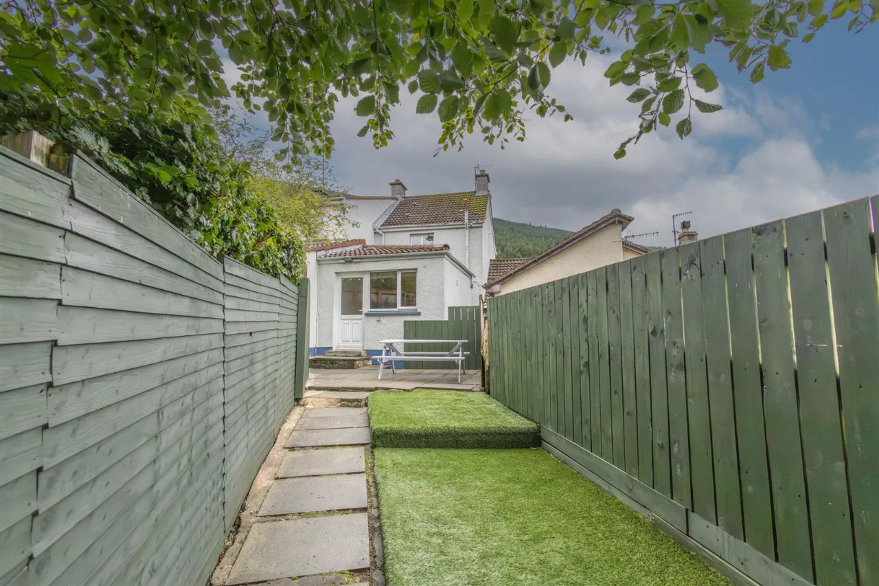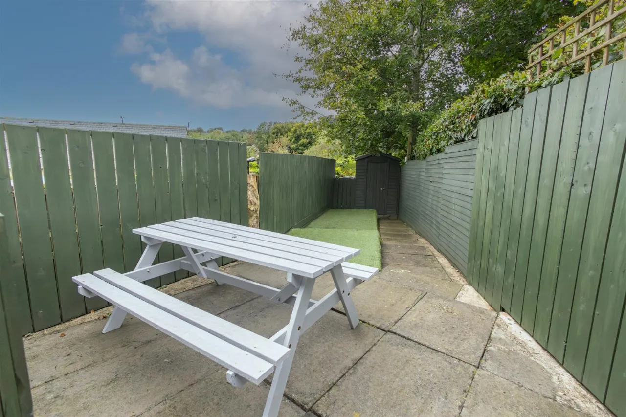 Enclosed space to front and rear of property. . Garden shed. External lighting