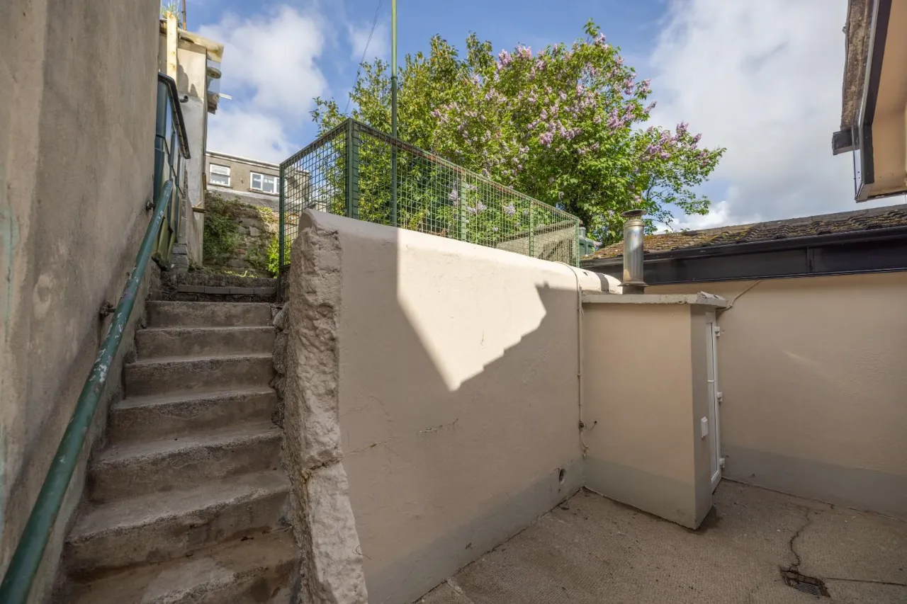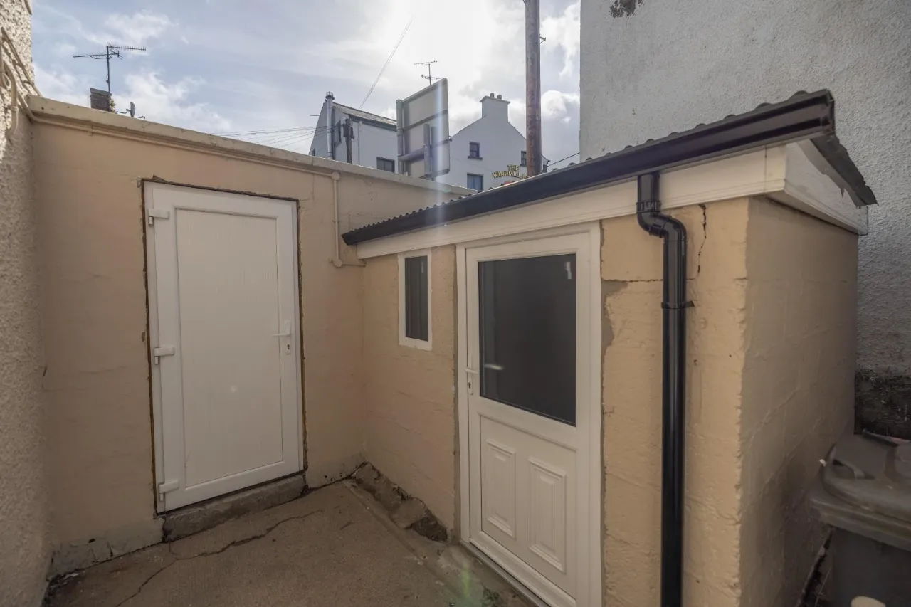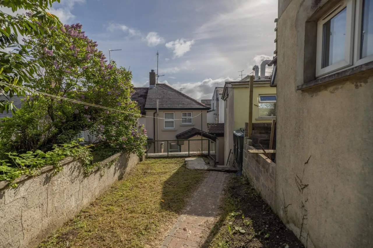 Enclosed yard located at the front of the property with a block built shed with PVC door and window.