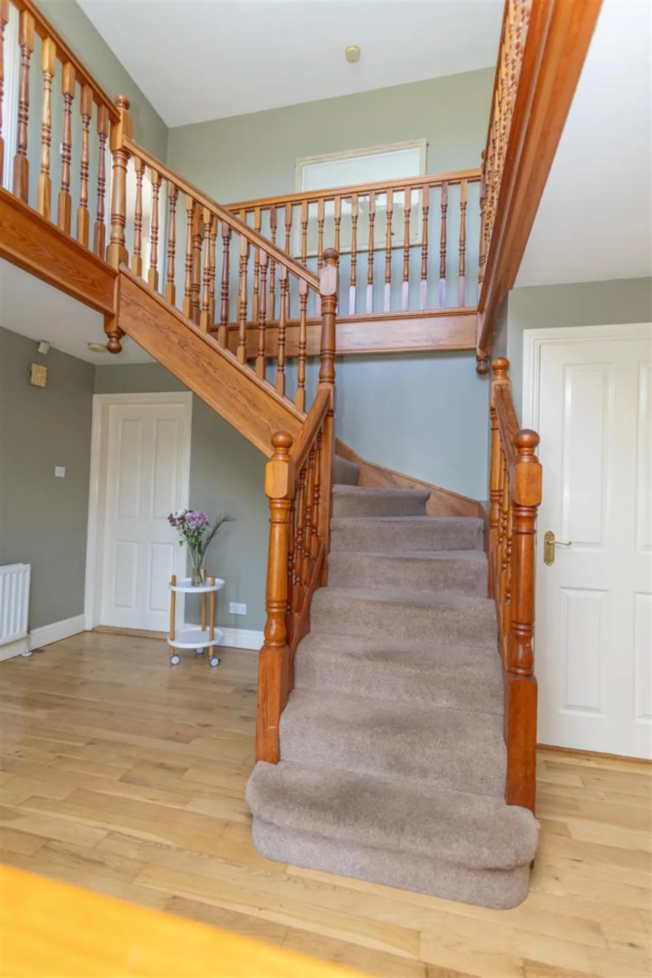 PVC Composite door, Tiled/ solid wood flooring, wooden tiered balustrades, Double radiator, Feature lighting