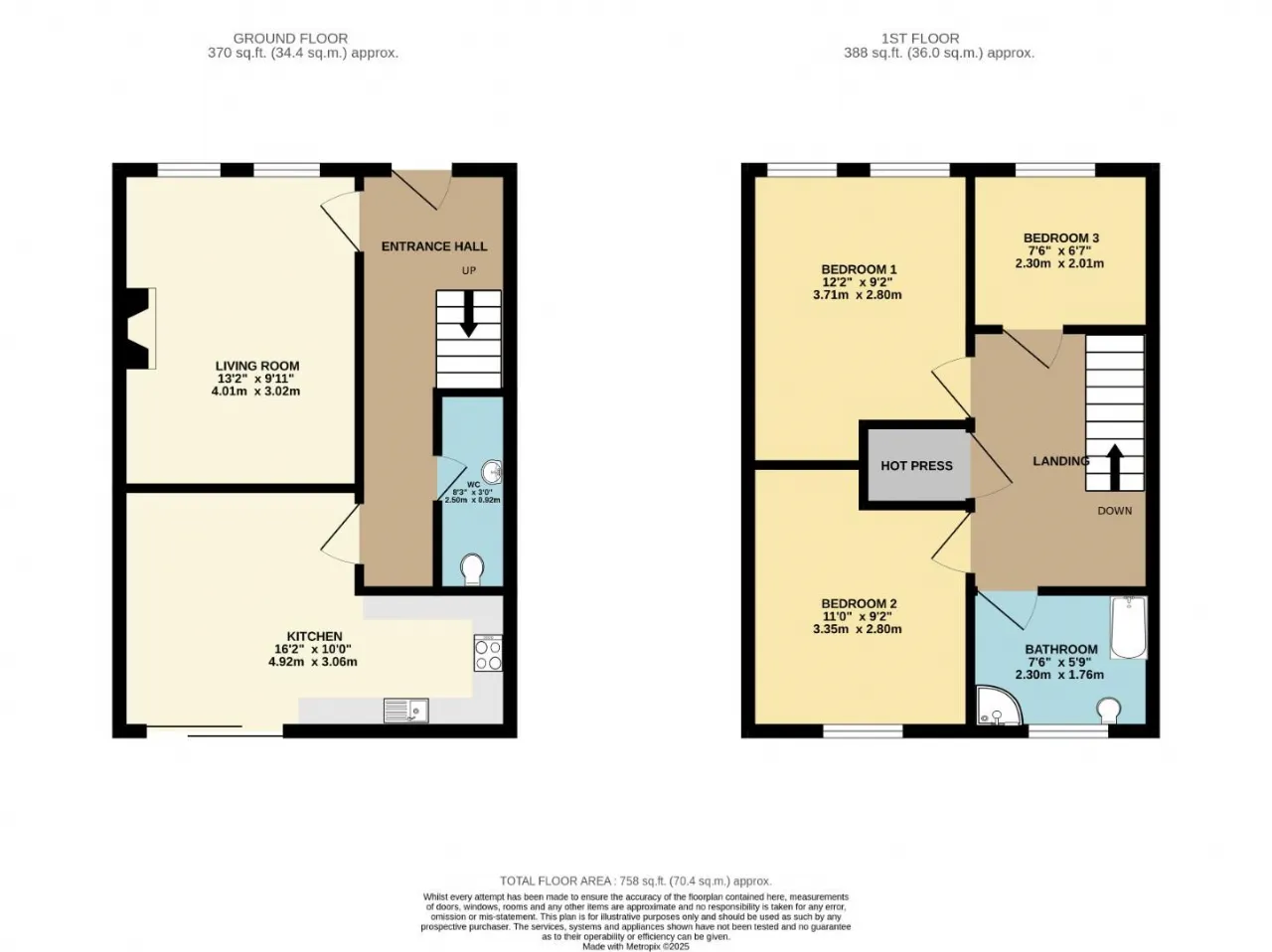 BEDROOM 1: 12'2" x 9'2" (3.7m x 2.8m)