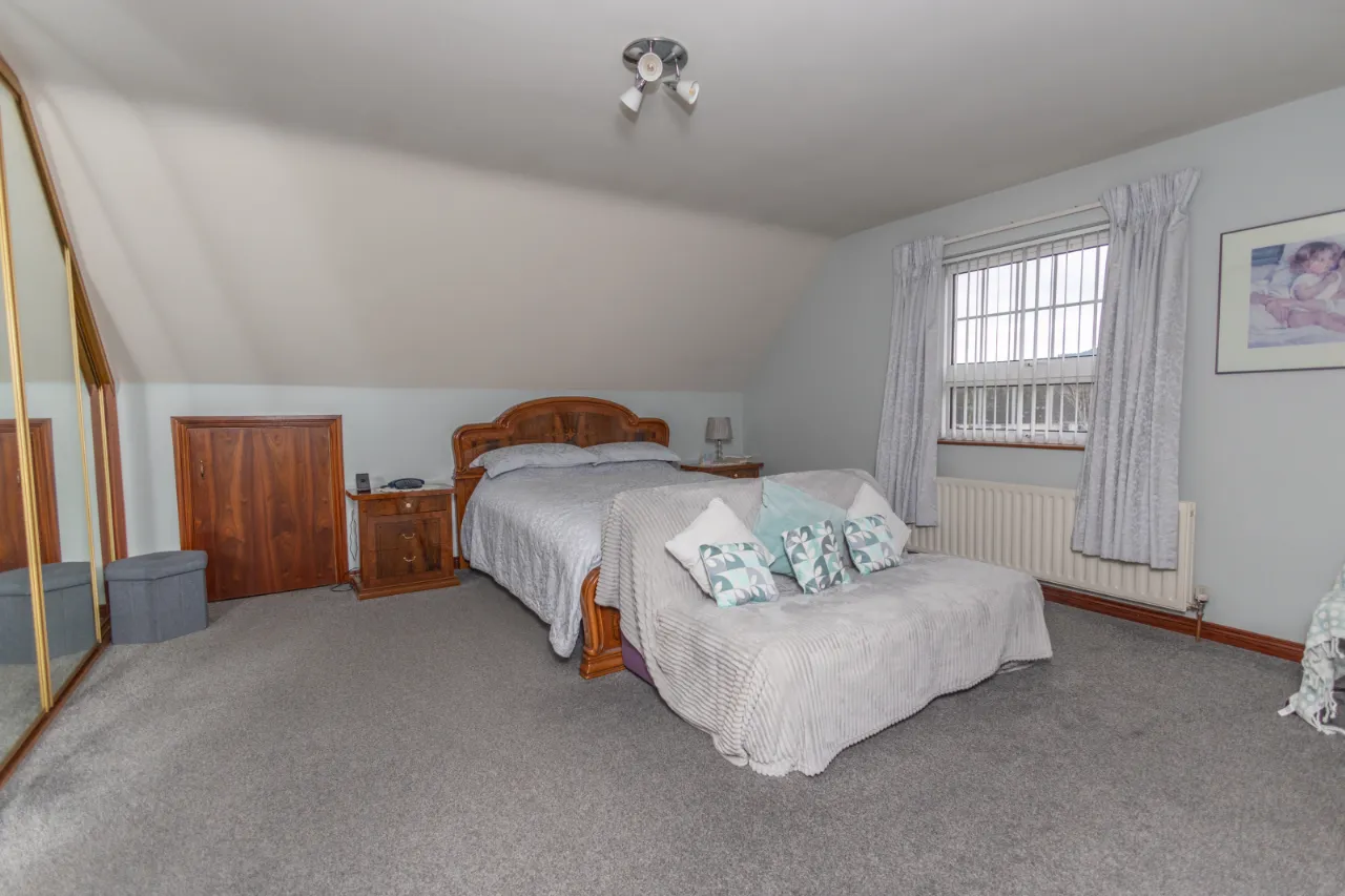 Carpet floor, radiator, built in sliding wardrobes, grid windows.