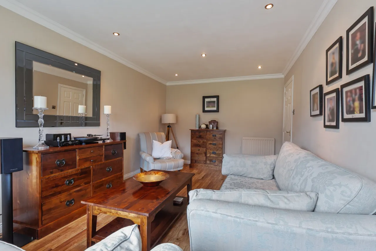 Feature fireplace (Open), patio doors to rear, corniced ceiling and Amtico flooring.