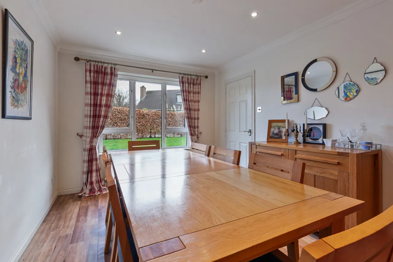 Comprises of an excellent range of high and low level units, one and a half bowl sink unit with mixer tap and drainer. Five ring gas hob with overhead extractor hood, integrated double oven and grill. Integrated dishwasher, integrated wine cooler, larder storage, tiled flooring, ample space for formal dining space and access to utility room.
