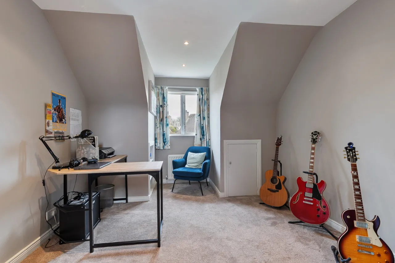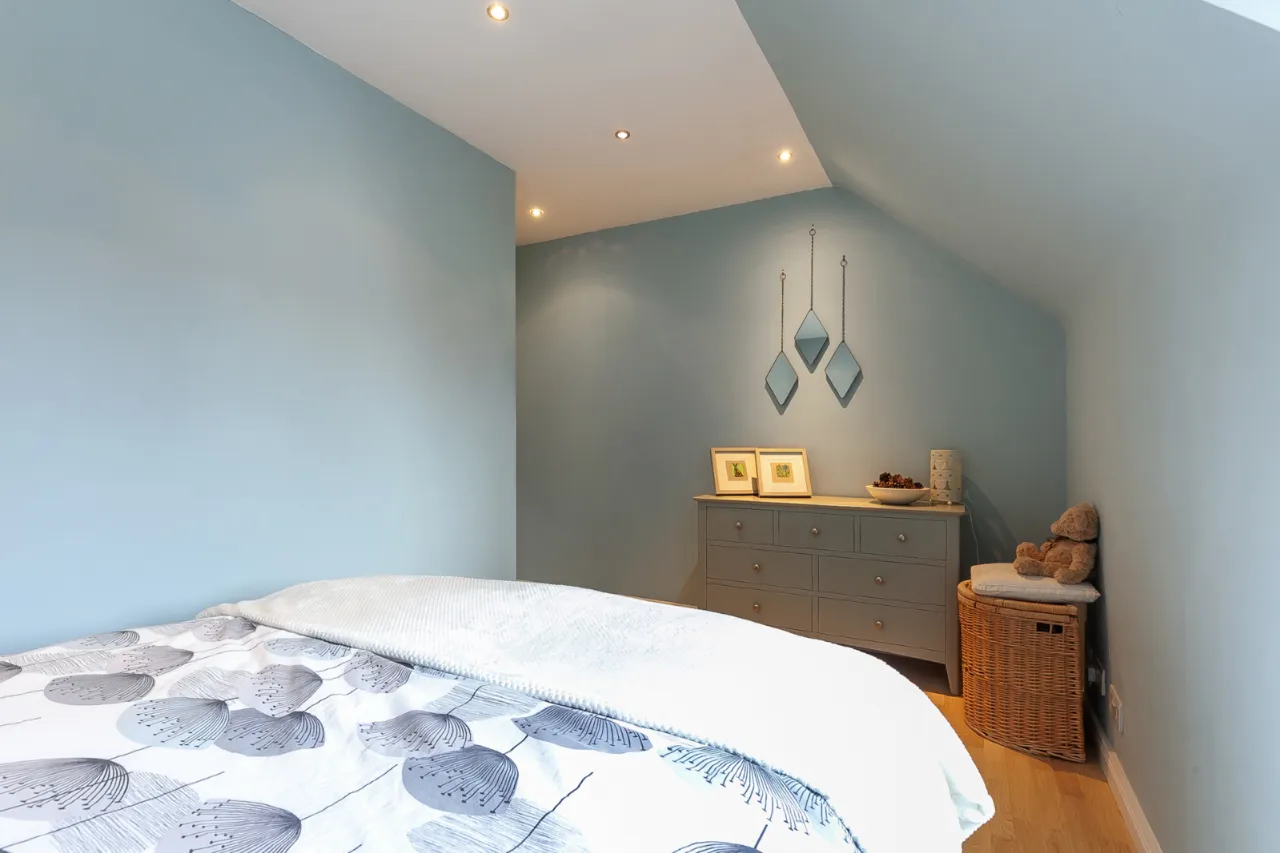 Range of fitted wardrobes, access into eve storage, recessed lighting and Amtico flooring.