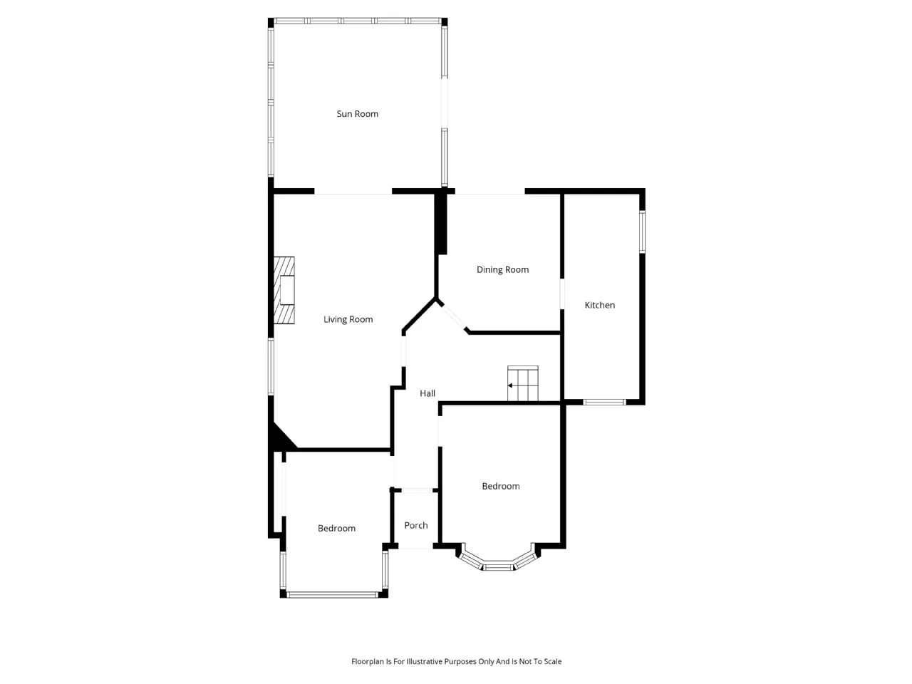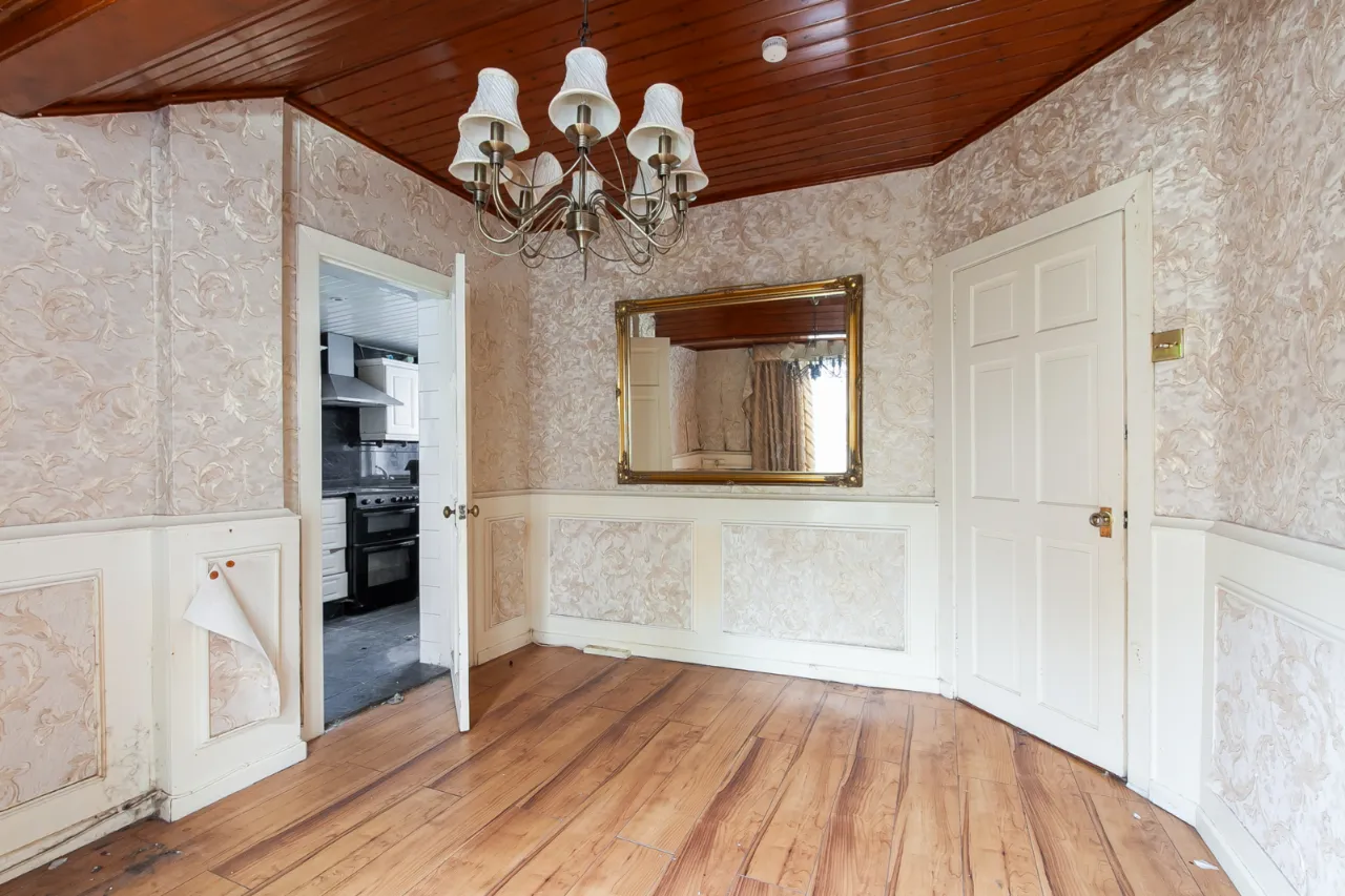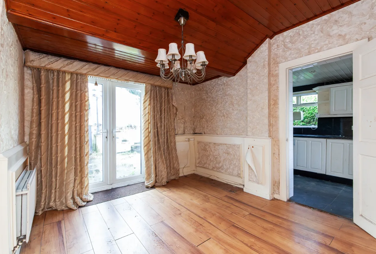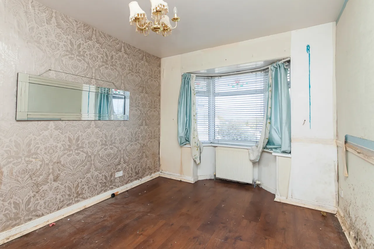 Internally, the accommodation comprises a small entrance porch leading into a central hallway, giving access to two well-proportioned front bedrooms. To the rear, a spacious main living area, complemented by a separate lounge which could serve as an additional bedroom or flexible reception space. The kitchen is positioned adjacent to a separate dining area, which provides direct access to the rear garden. A bathroom completes the internal layout.