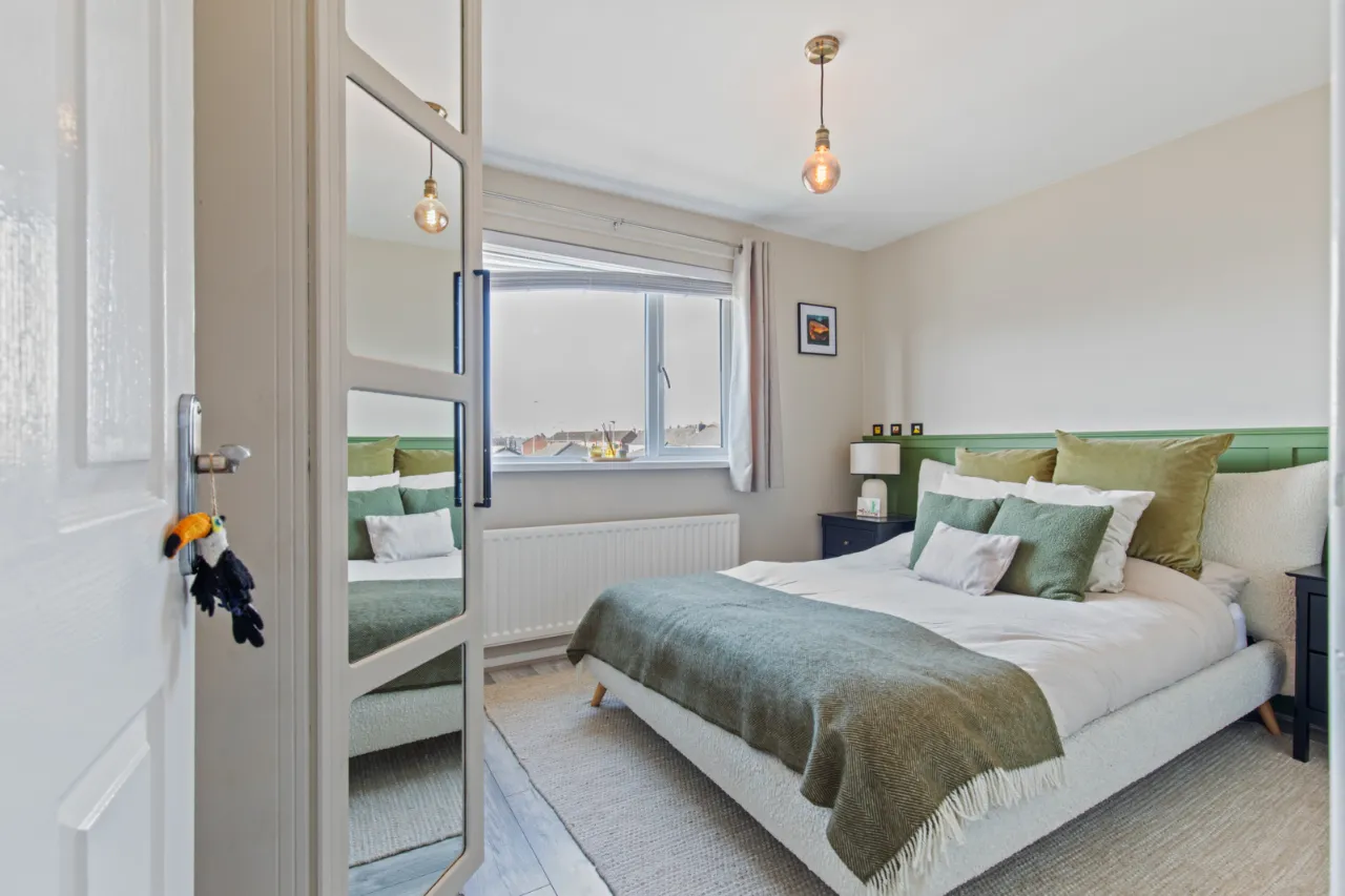 Built in robe, polished laminate floor, views over Newtownards to Scrabo Tower, wall panelling.