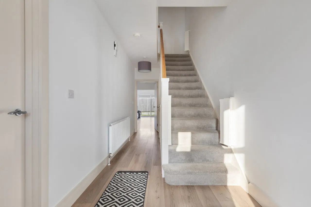 Led recessed spotlighting, solid wood front door and glazed side lights to:
