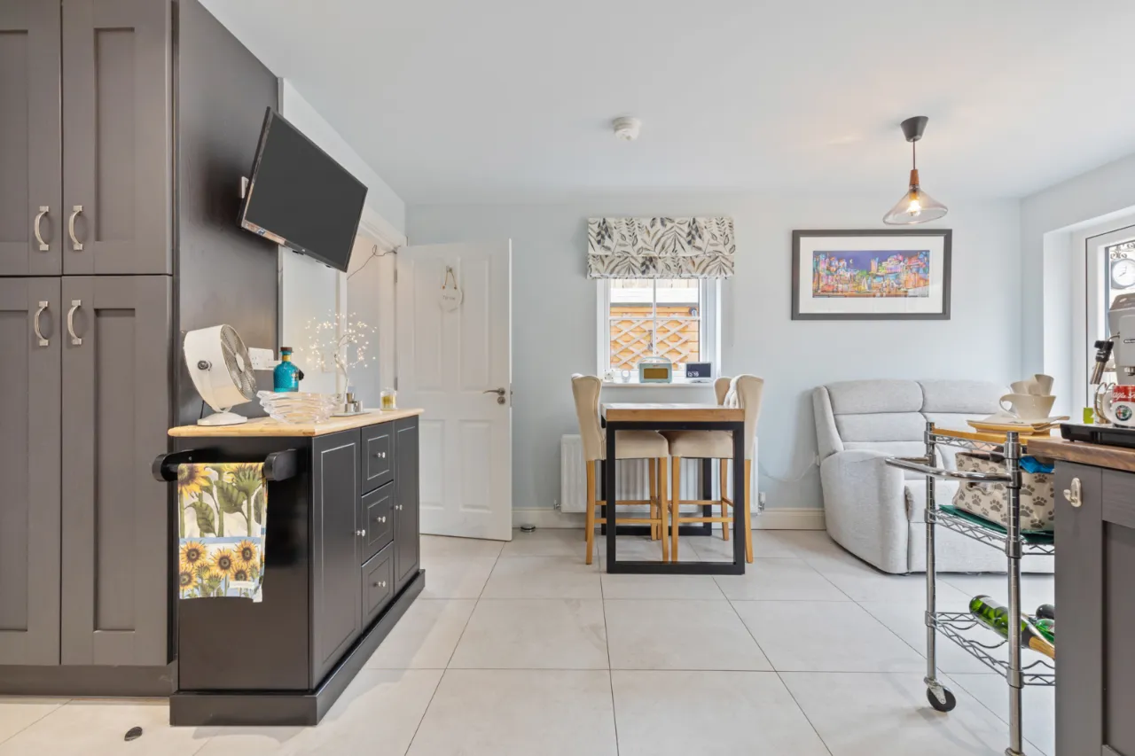 Attractive modern electric fire, TV & telephone point. Luxury vinyl tile flooring, glazed door to: