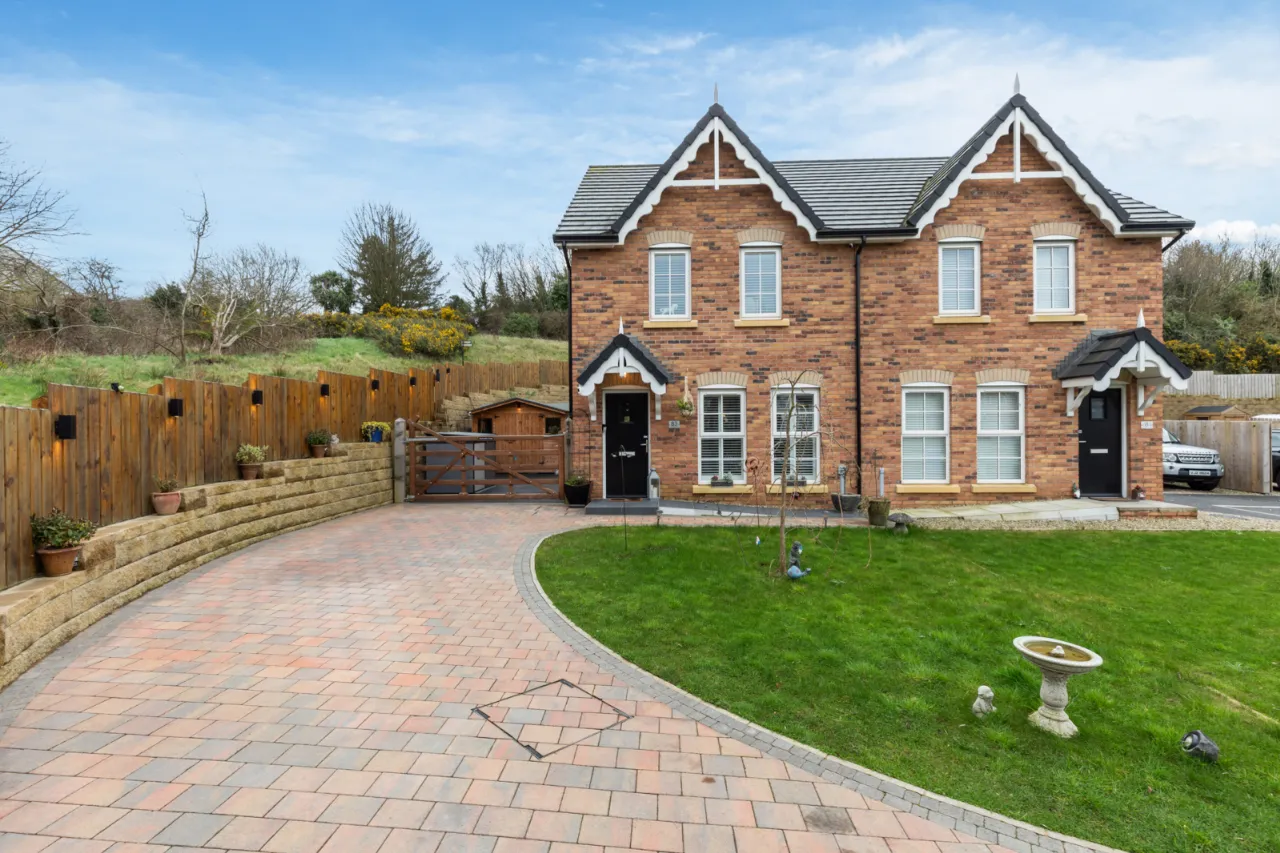 Large brick paved and tarmac driveway to front and side of property with 5 bar timber field gate.