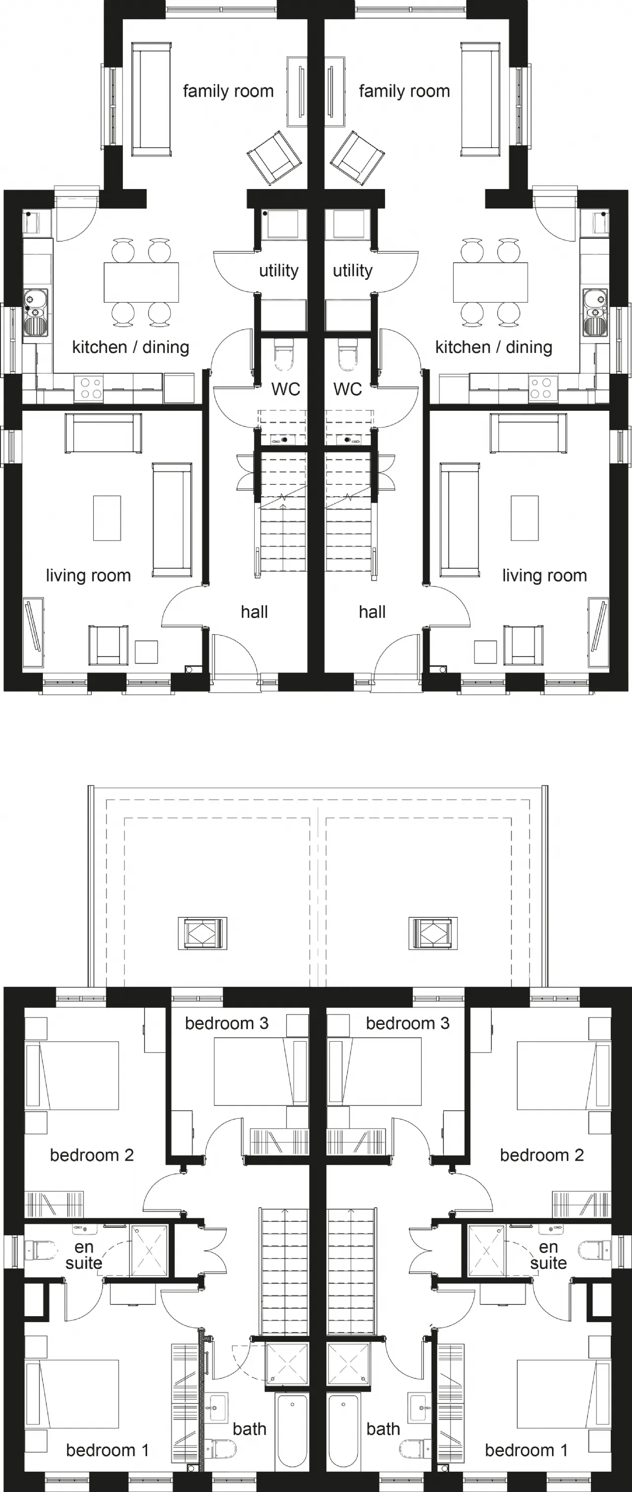Carpeting provided throughout all bedrooms, lounges, stairs and landings.