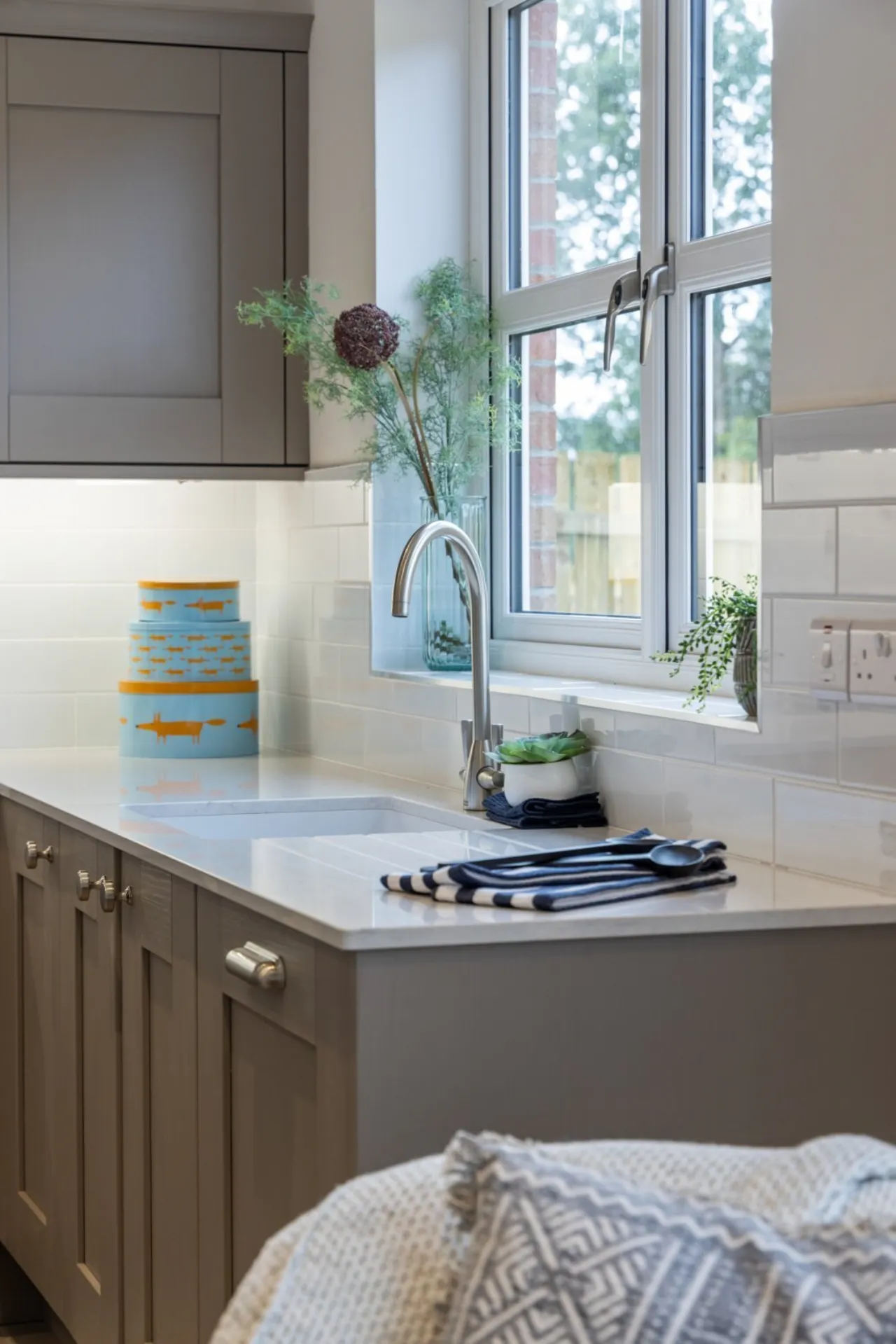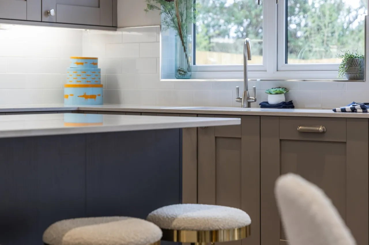 Ceramic wall tiling between kitchen units