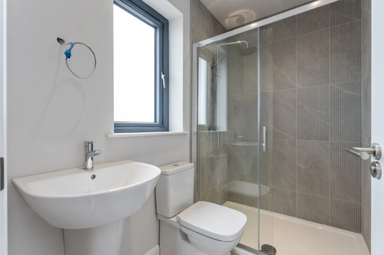 – Full height tiling to shower enclosures