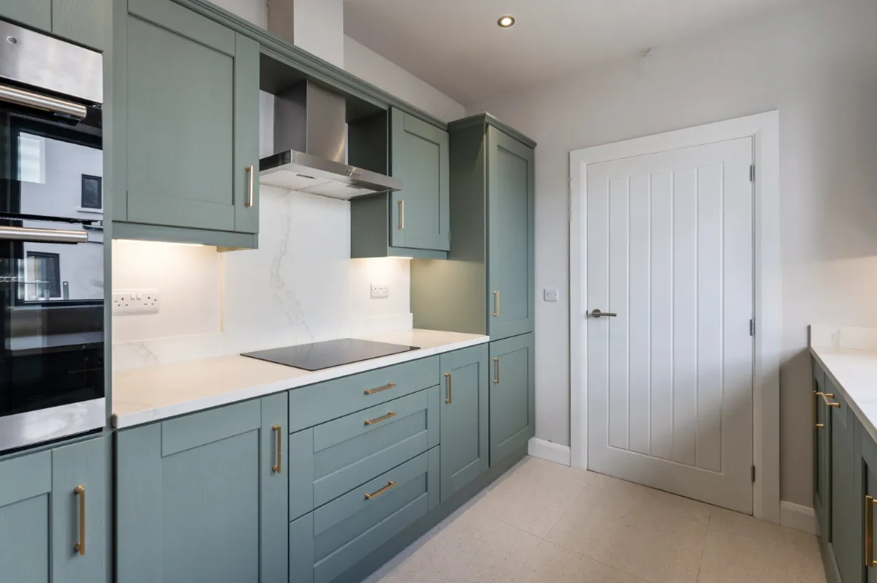 – Integrated branded electrical appliances to include electric hob, eye level double electric oven (site specific), extractor unit, fridge/freezer and dishwasher
