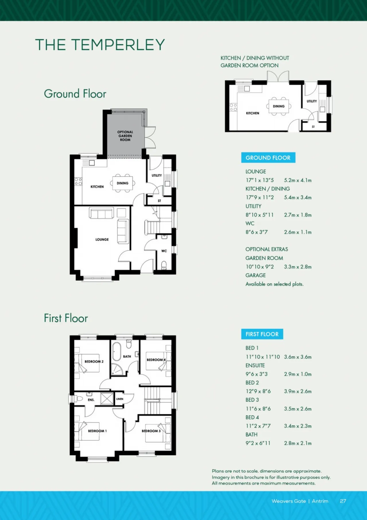 Ceramic floor tiling to kitchen, dining area, entrance hall, store, bathroom, ensuite and WC