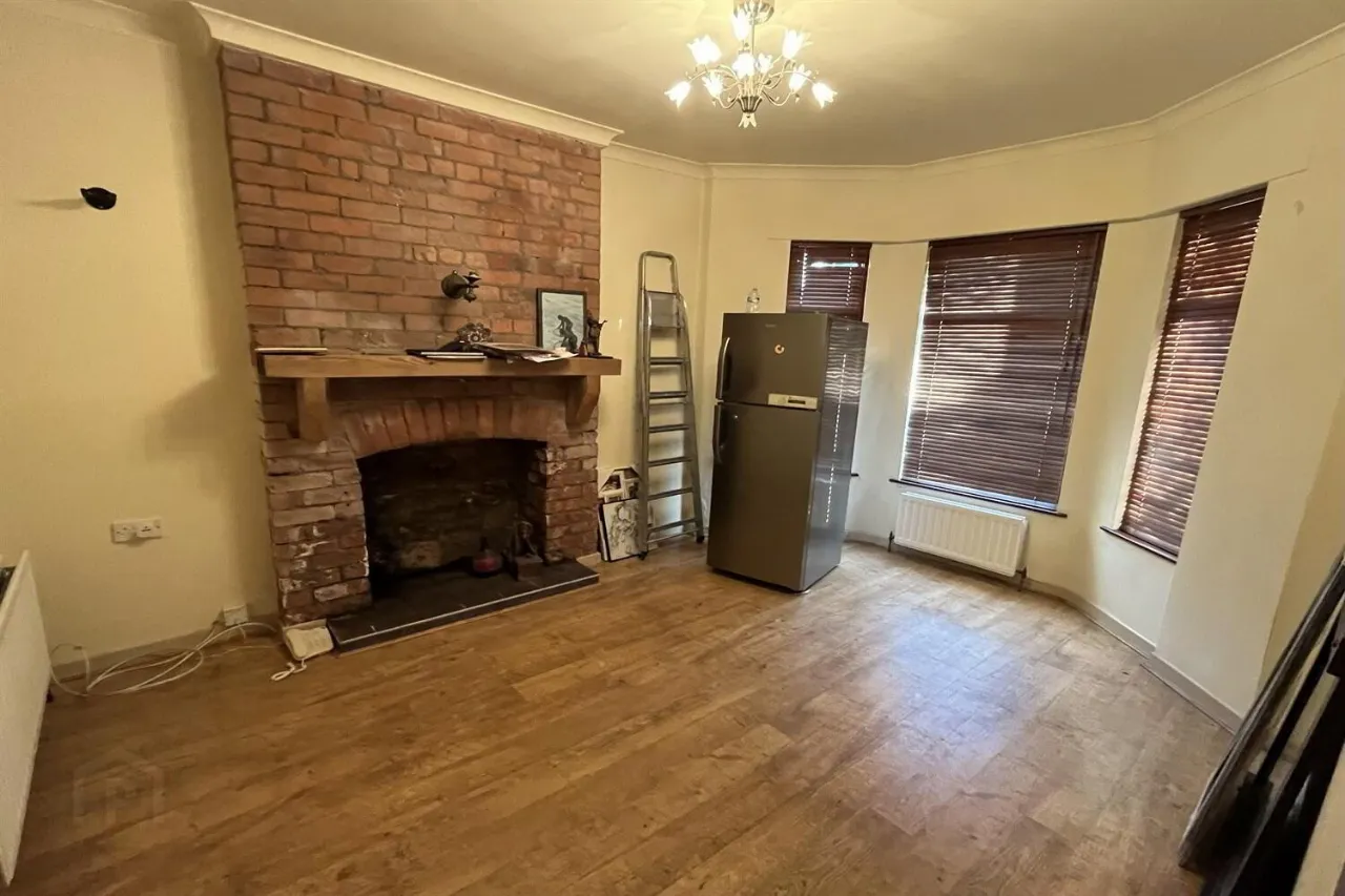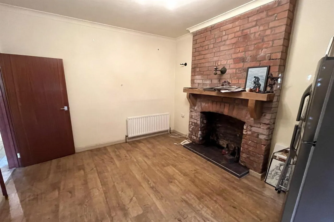 Laminated timber flooring, double panelled radiator x 2, brick fire place with tiled hearth.