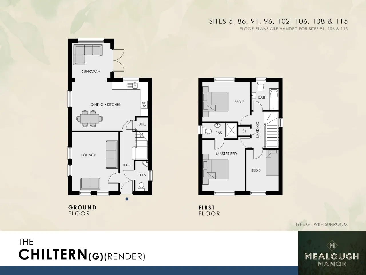Choice of tiled flooring to entrance hall, kitchen /dining, sunroom (where applicable), utility room, cloakroom,bathroom and ensuite