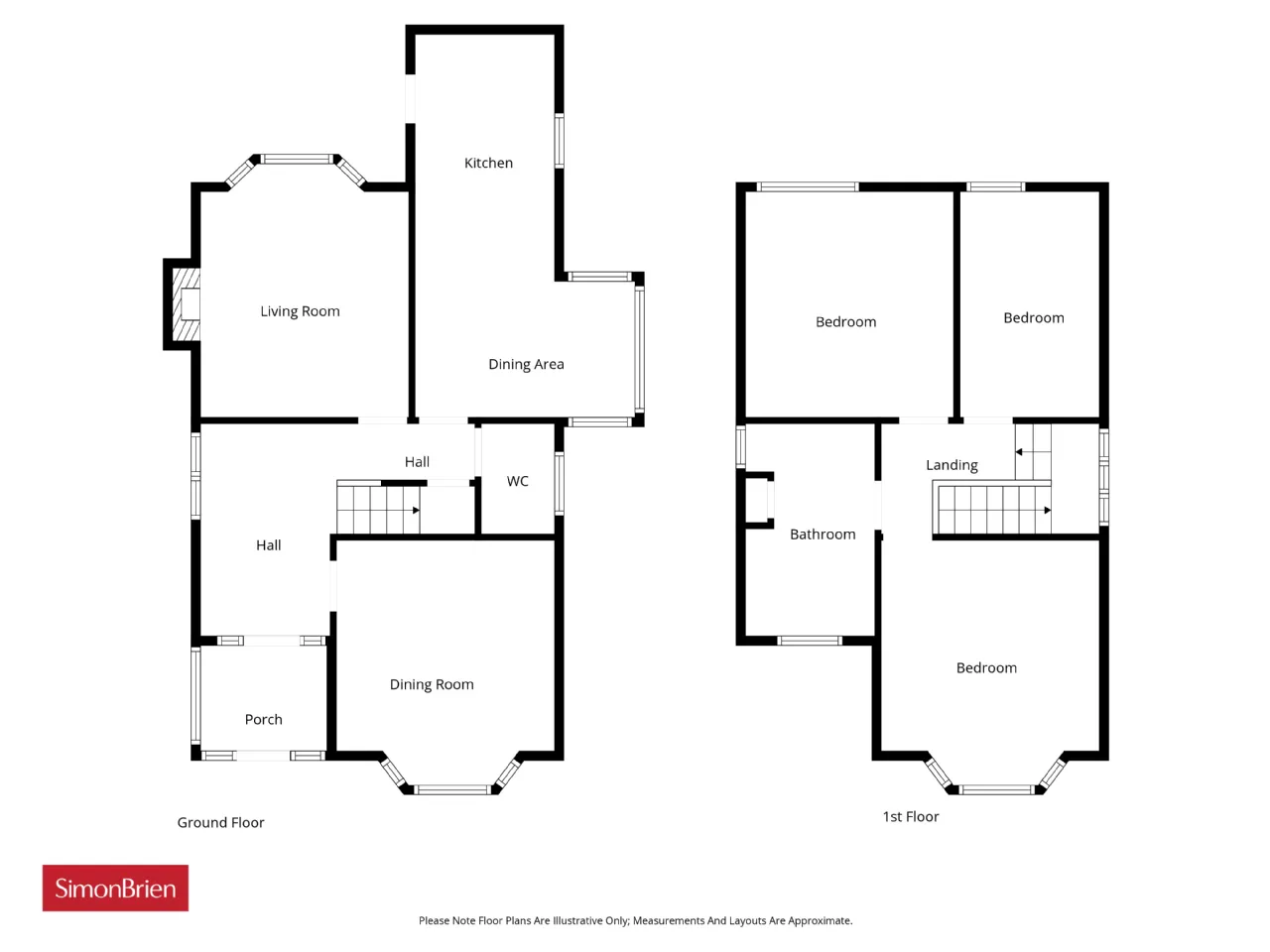 The property provides well-proportioned accommodation throughout, including a bright living room with open fire, a separate dining room with attractive bay window, and a kitchen which has been extended into a dining area, creating a practical space for everyday living. A convenient cloakroom with WC completes the ground floor.