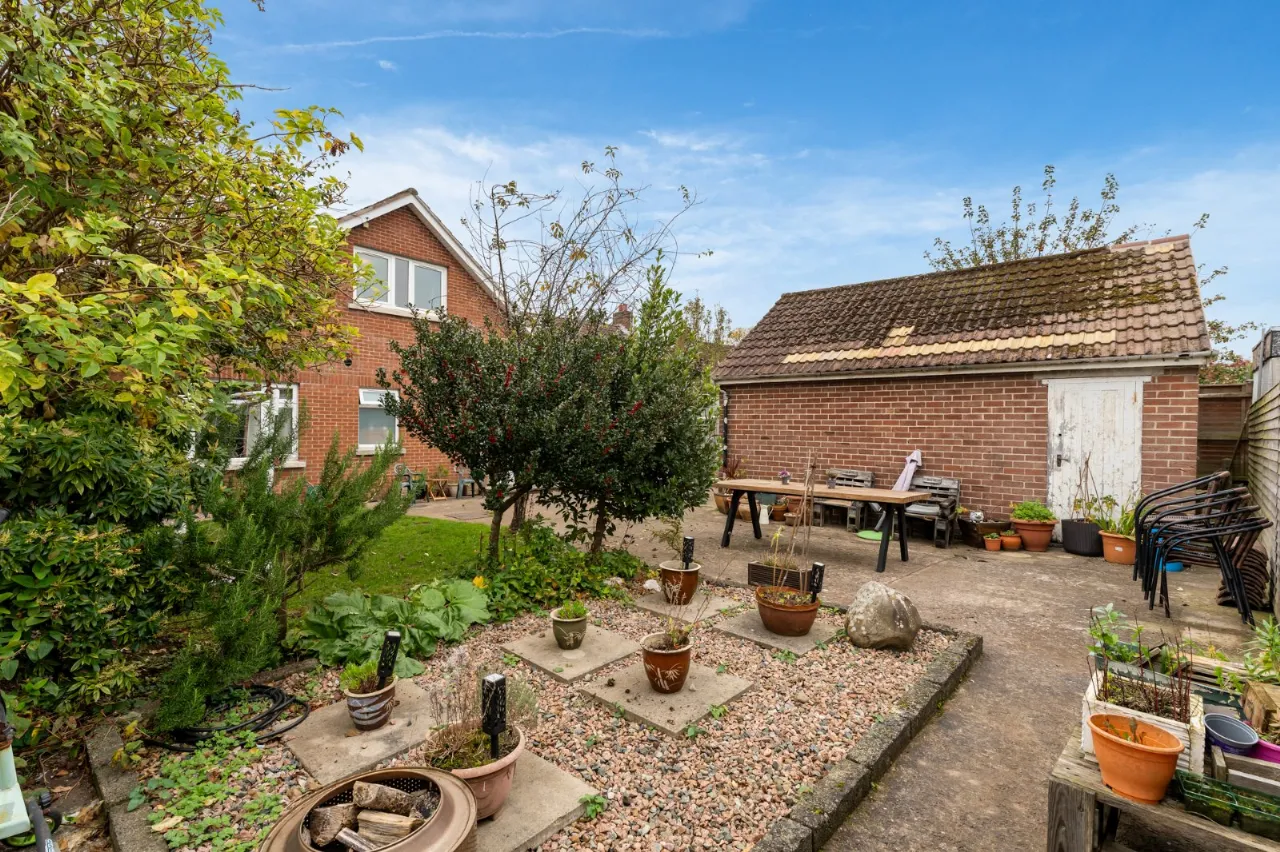 To the rear is a garden laid in lawns.