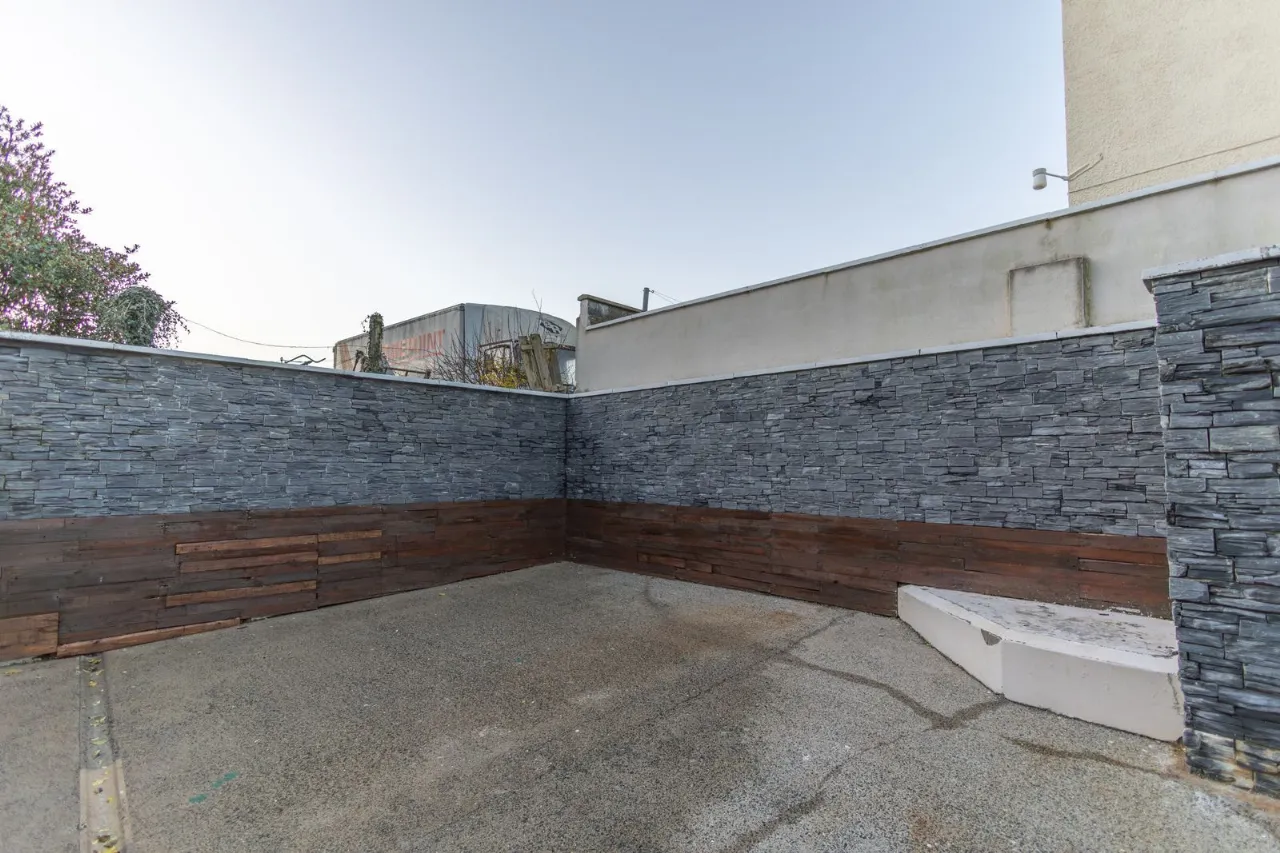 Enclosed rear area with a feature wall.