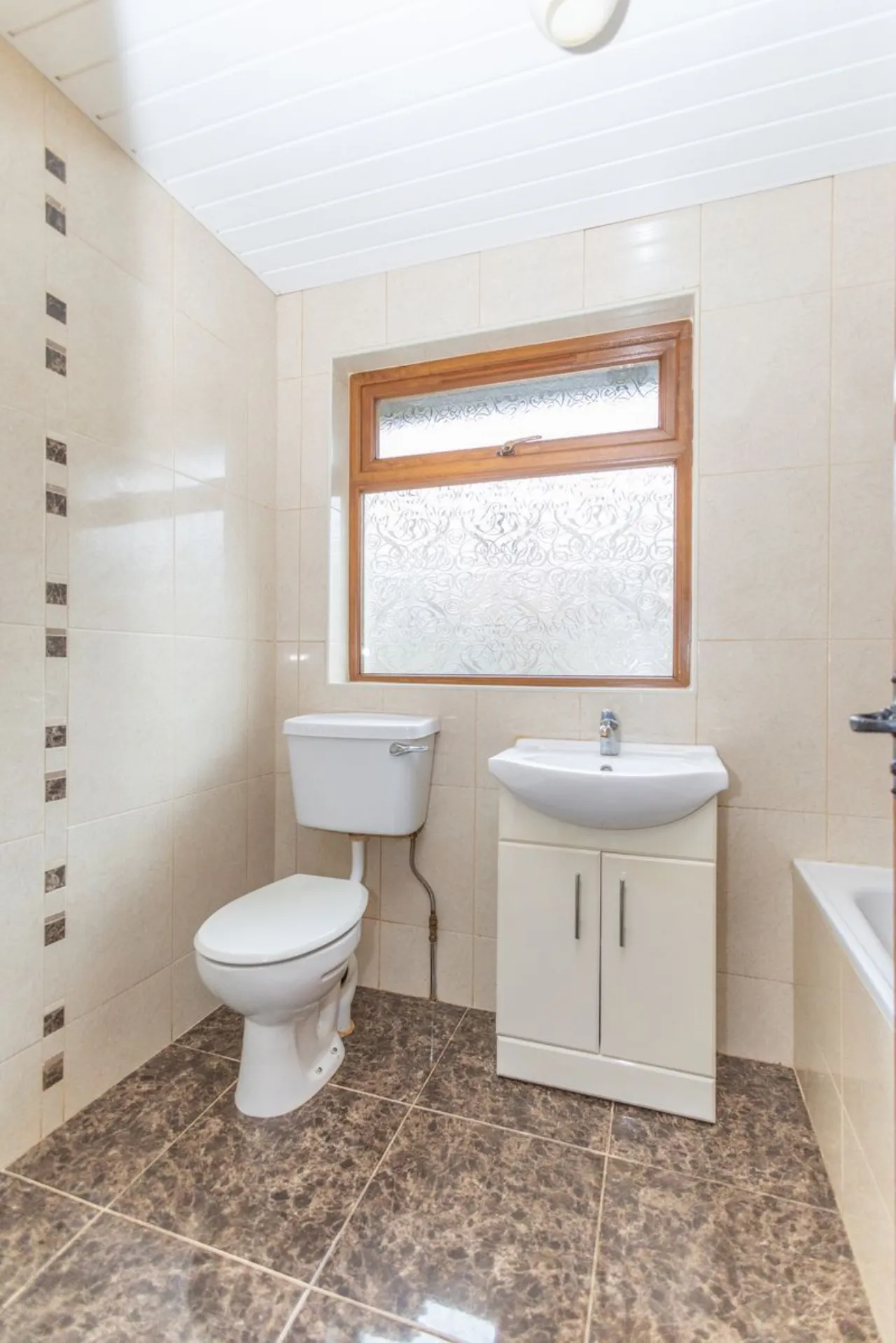 3 piece bathroom suite. Fully tiled flooring and walls. Single radiator