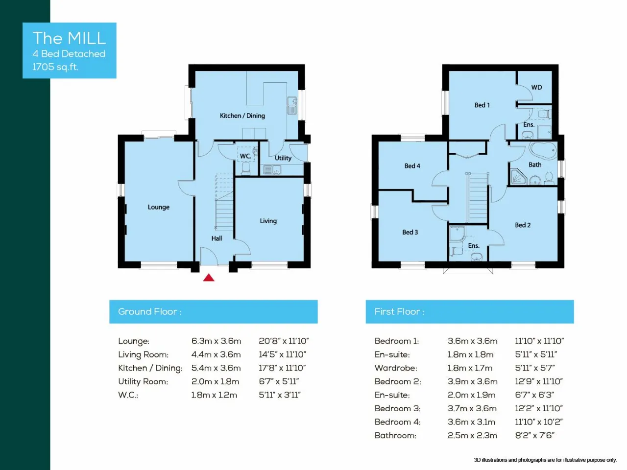 Choice of ceramic floor tiling to kitchen, dining area, utility, bathroom, ensuite and WC.