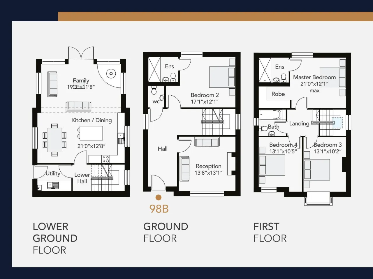 Accommodation is spread across the ground and first floors, comprising four generously proportioned bedrooms. Two of these include en-suite bathrooms, and the master bedroom further benefits from a practical walk-in robe. All specification is subject to change at time of build.