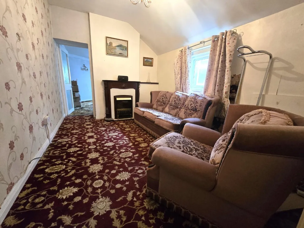 Carpet floor, Double radiator, Ornamental fireplace, Feature lighting.
