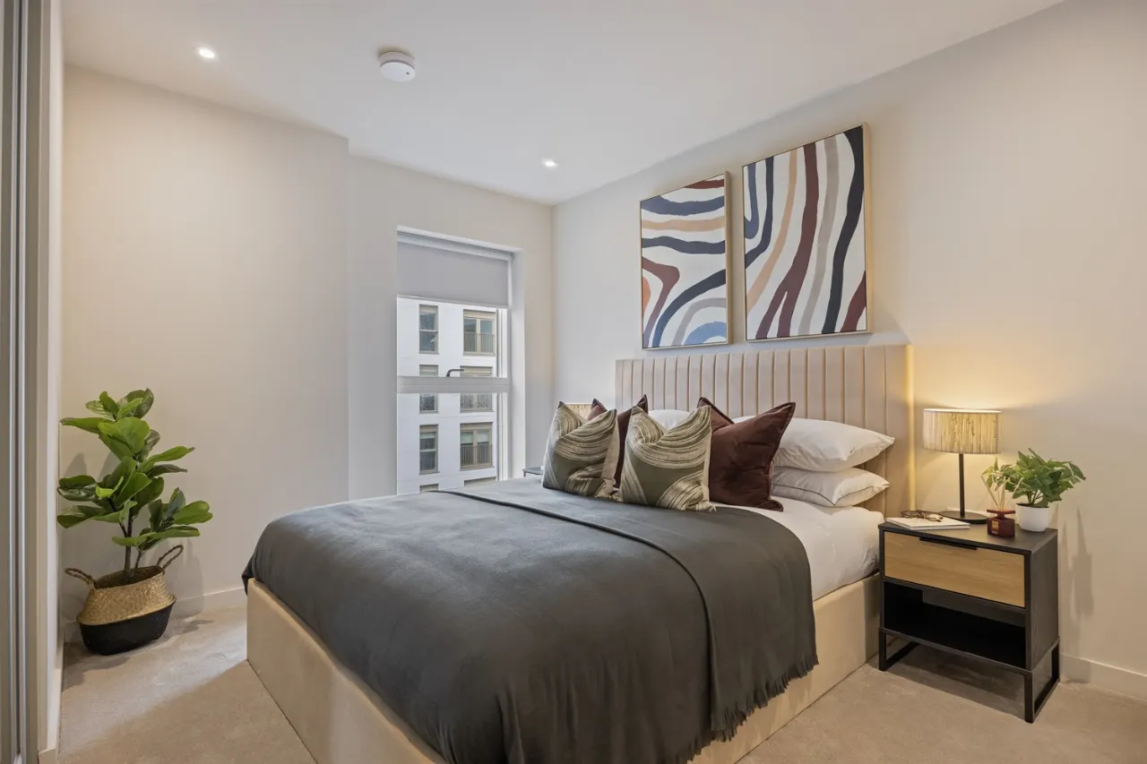 The apartments are fully furnished with contemporary furniture and finished in a sophisticated neutral colour palette with luxury flooring throughout. Bedrooms are generously sized and include sliding mirrored wardrobes, while the bathrooms are finished to a high standard with either double walk-in shower units or chrome shower over bath.