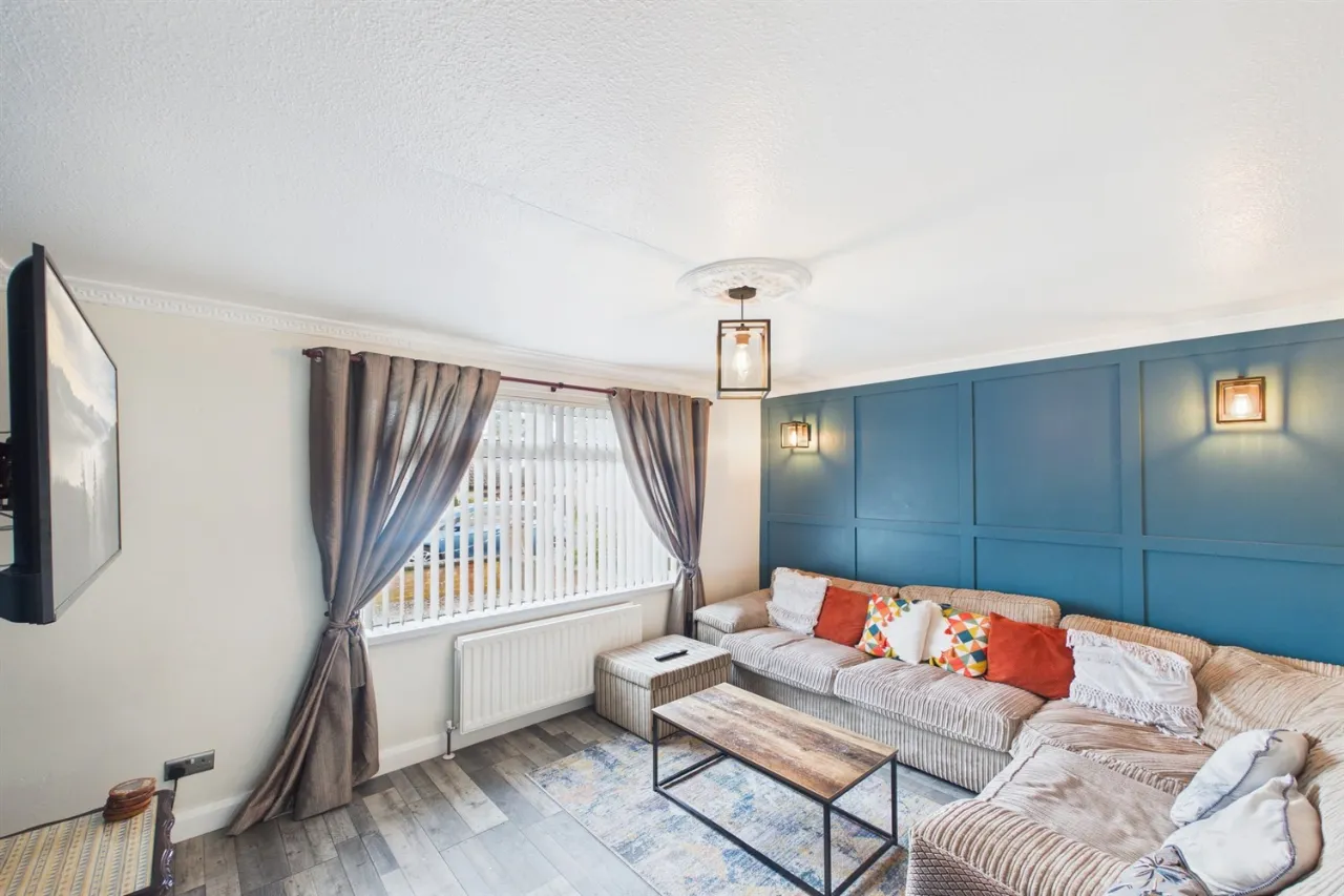 Situated in the popular Belvoir Estate area of Archdale Drive, BT8, this sought-after two-bedroom terraced bungalow is available for rent at £925 per calendar month. Offering a well-proportioned layout, the property features a bright lounge enhanced by decorative wall panelling and modern wood laminate flooring, creating a welcoming and stylish living space.