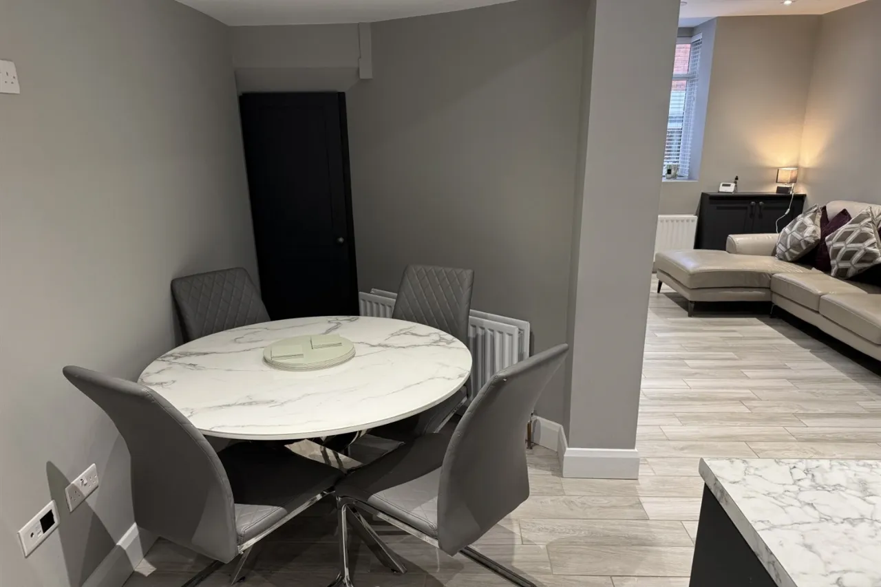 Also on the first floor is the second double bedroom, also furnished to a high standard with a double bed, wardrobe and drawers and the main bathroom of the property which has been stylishly finished and features a shower over tub configuration.