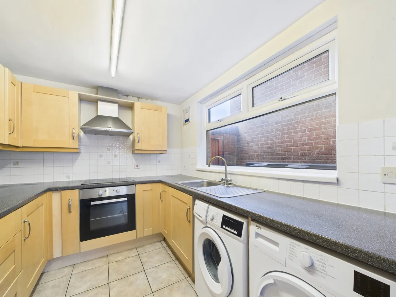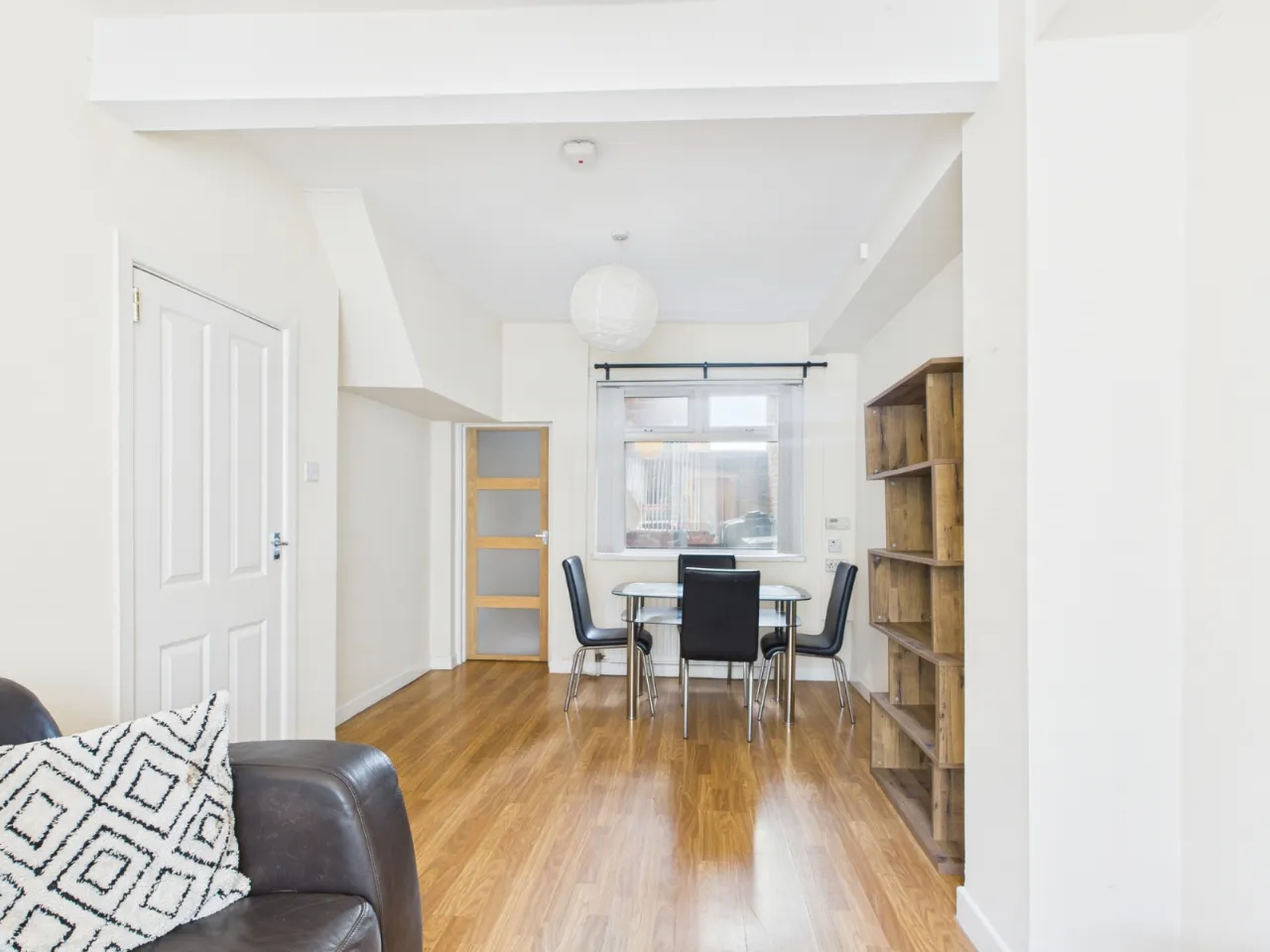 This charming two-bedroom, one-bathroom terraced house in East Belfast is offered furnished, with the bedrooms partly furnished. It features a welcoming living room, a kitchen, and a bathroom with a shower over the bath.