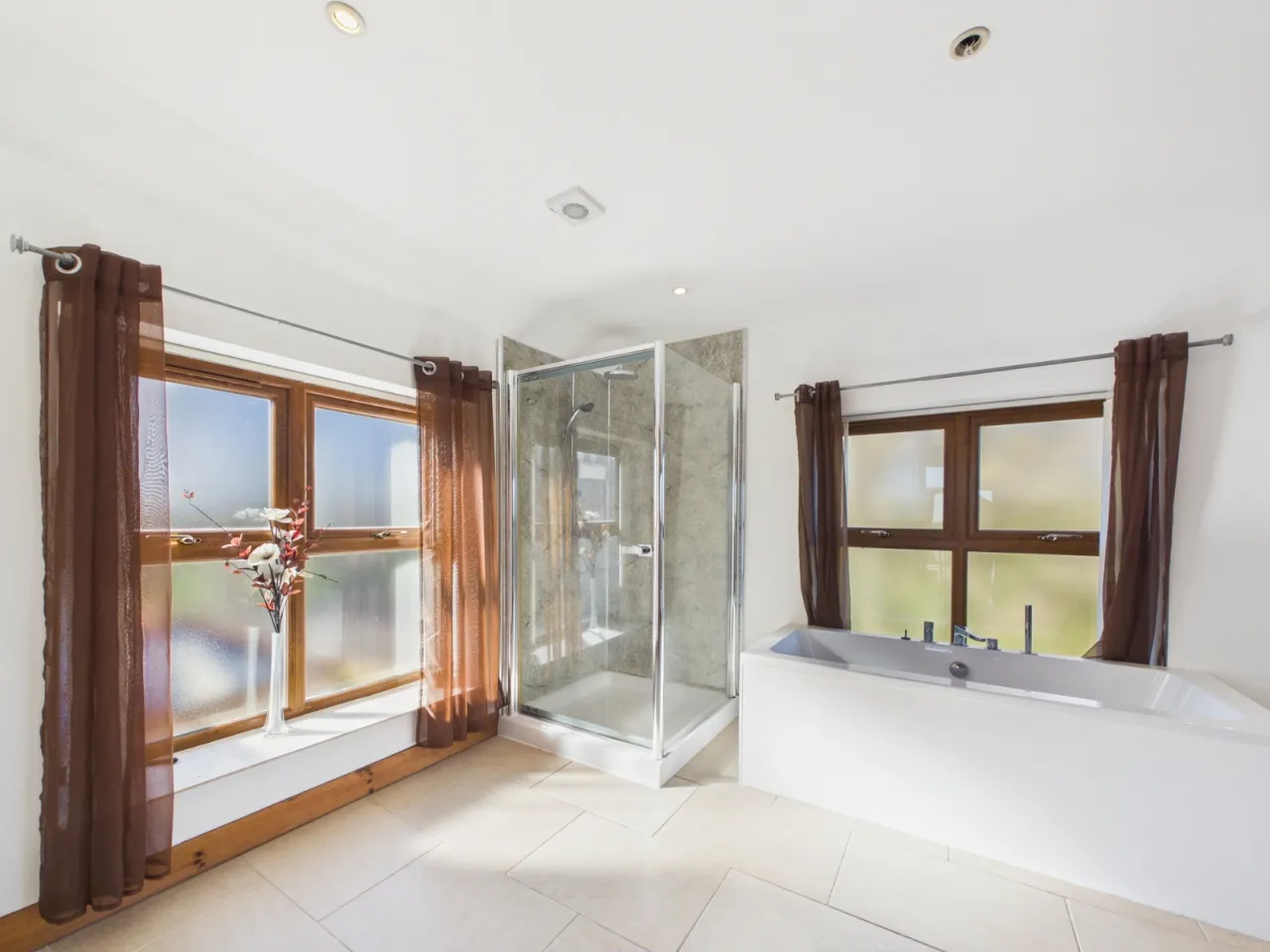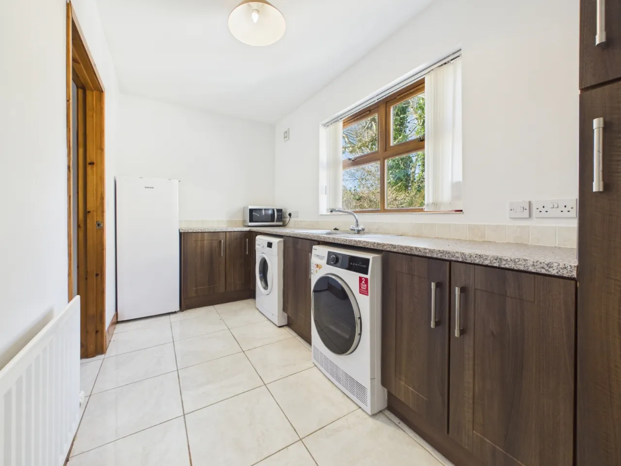 The main house is bright and generously proportioned, featuring a welcoming entrance hall, large open-plan living and dining space with vaulted ceilings and skylights that flood the room with natural light. The property also benefits from well-appointed bedrooms, modern bathrooms, and practical utility space.