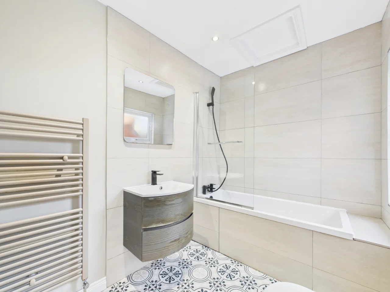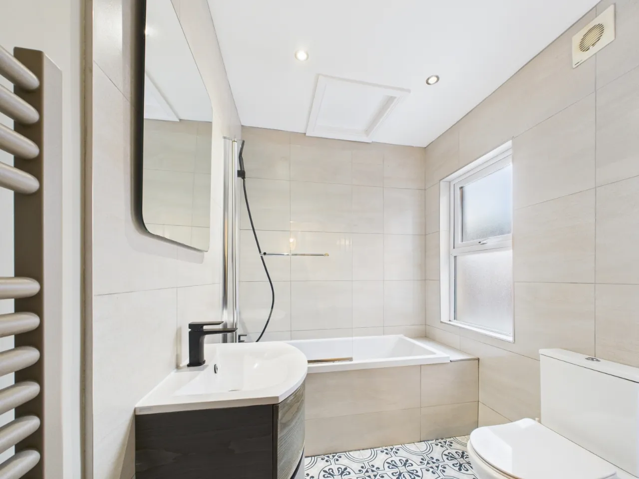 Stylish new downstairs bathroom, recently fitted with contemporary fixtures and a sleek modern finish.